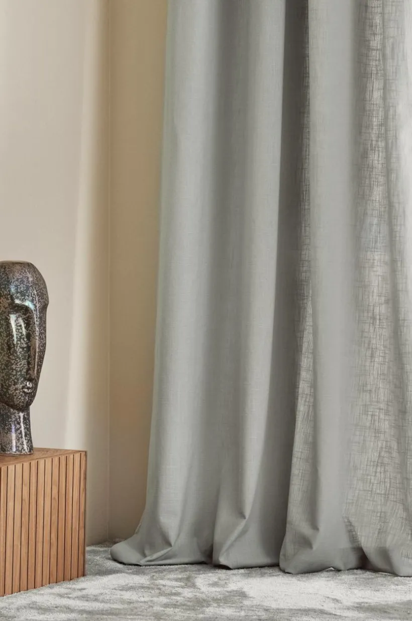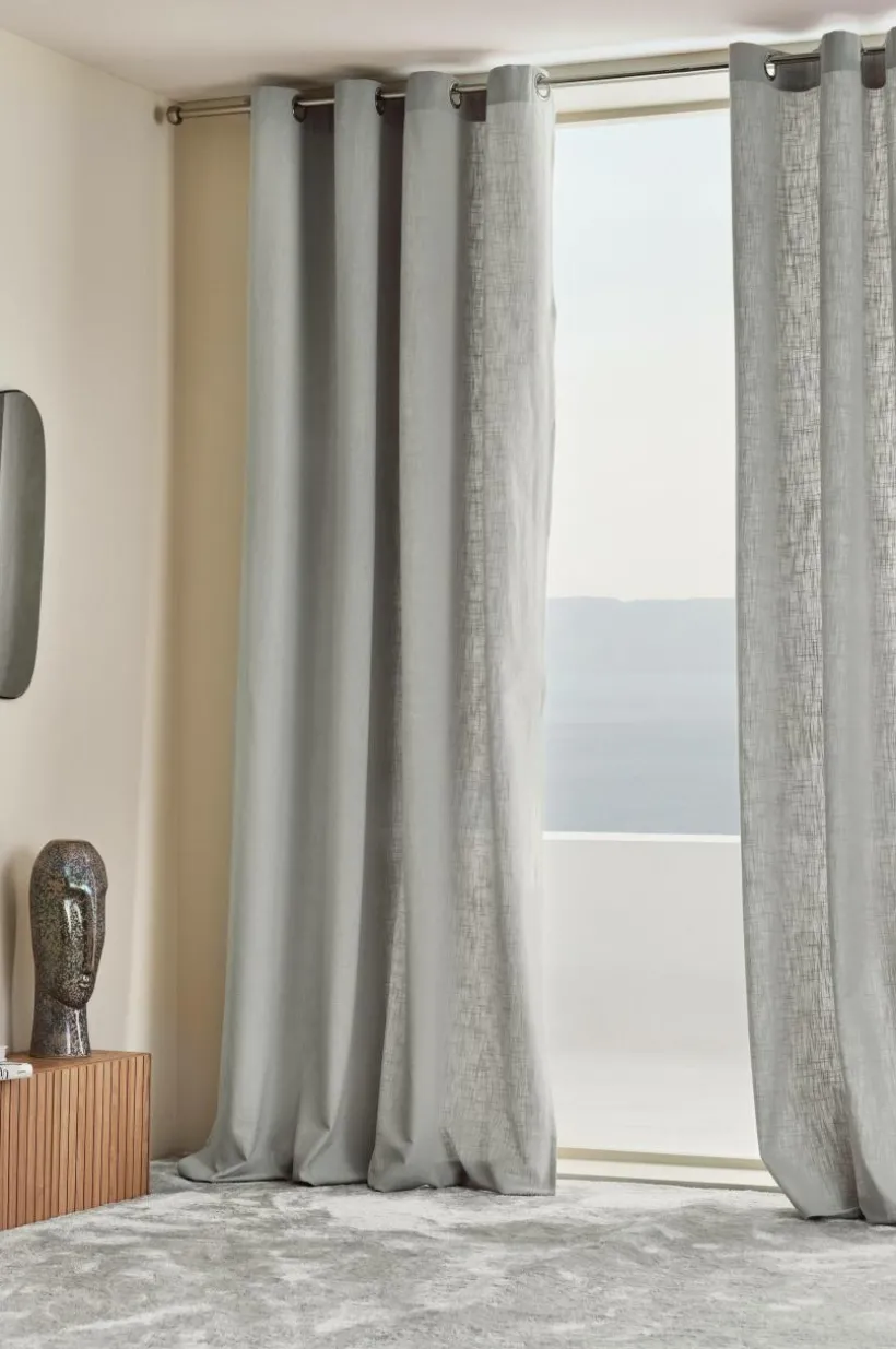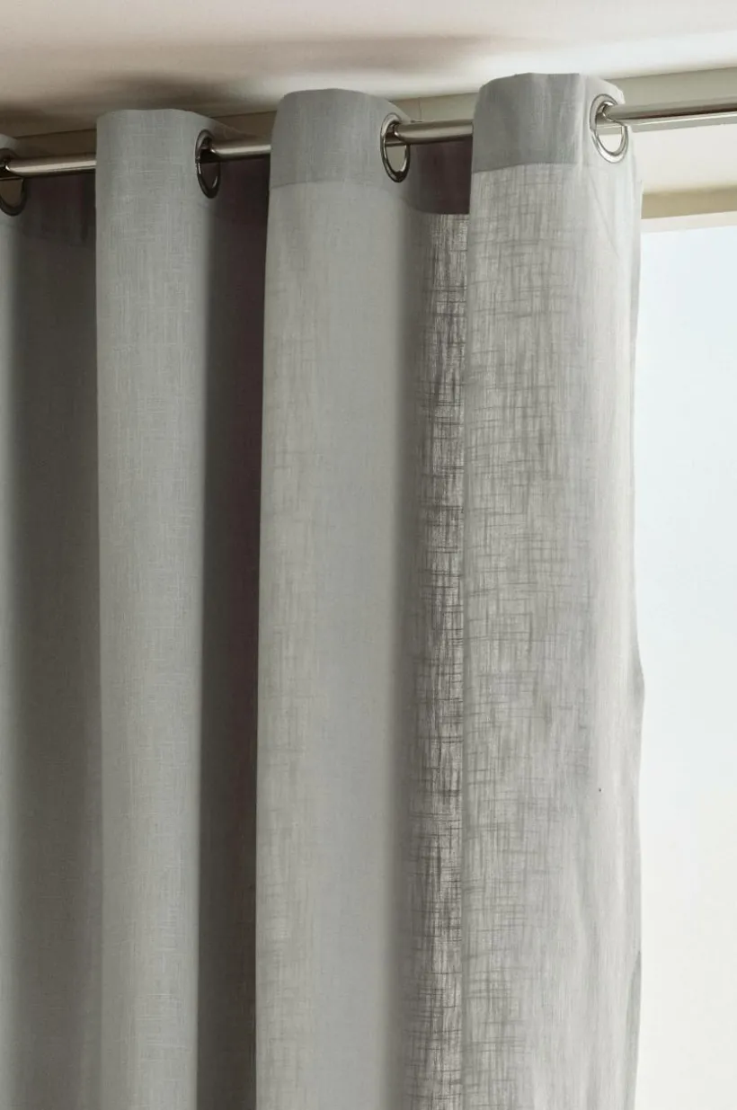2-pack enfärgade öljettlängder i bomull. 8 st metallöljetter per längd. Träs enkelt på en gardinstång.