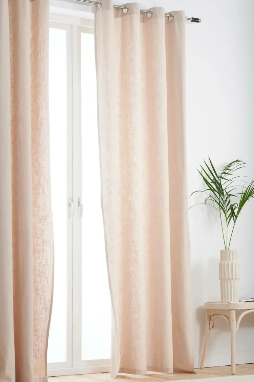2-pack enfärgade öljettlängder i bomull. 8 st metallöljetter per längd. Träs enkelt på en gardinstång.