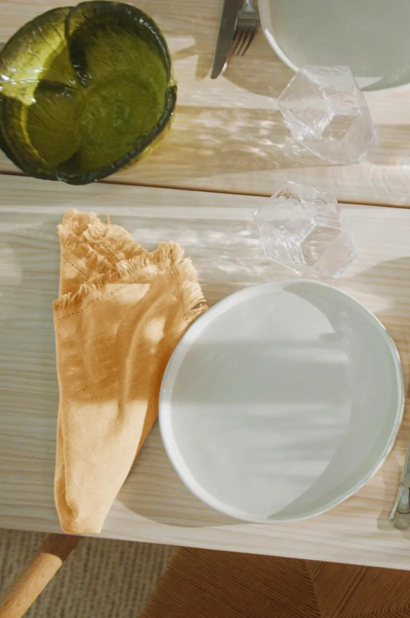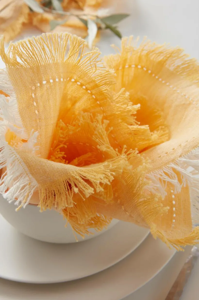2-pack servetter av enfärgad bomull med dekorativa fransar längs sidorna. När du inreder med enfärgade tyger är det tillåtet att släppa loss fantasin vad gäller tapeter, porslin och detaljer.