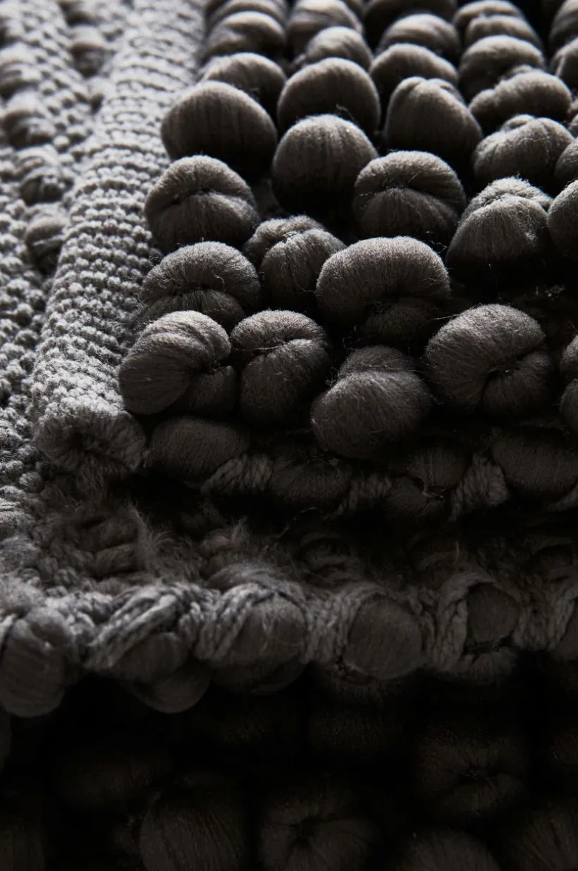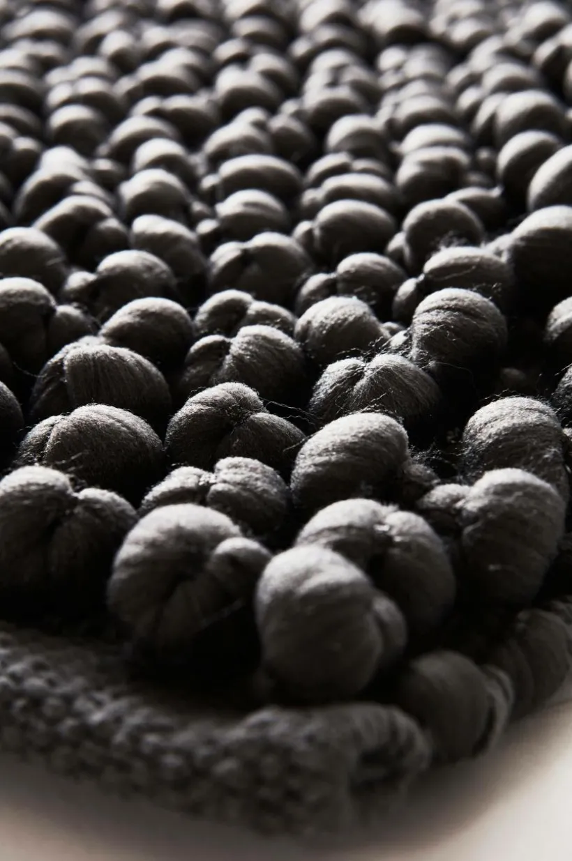 1-pack vävd badrumsmatta i polyester och bomull. En rolig badrumsmatta med små knutna bollar som påminner om poppade popcorn. Bekväm och mjuk att gå på. 2150 g/m².