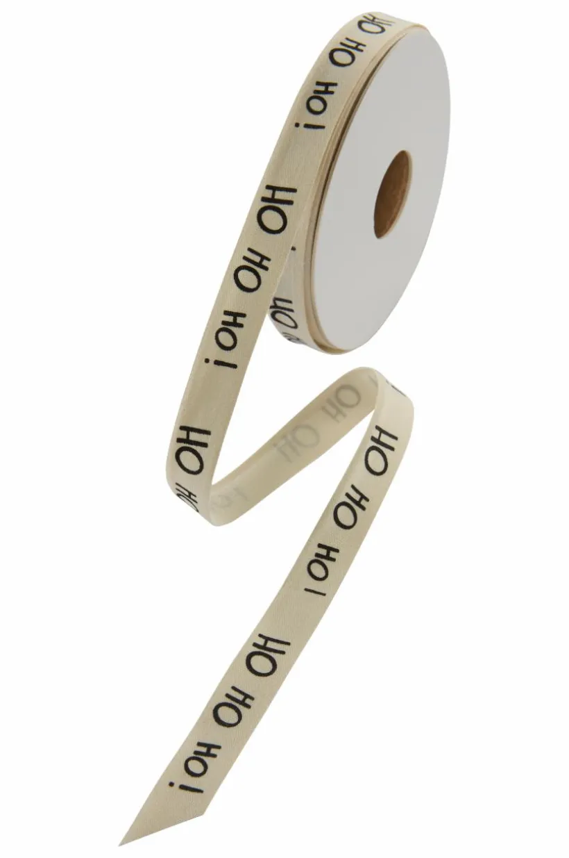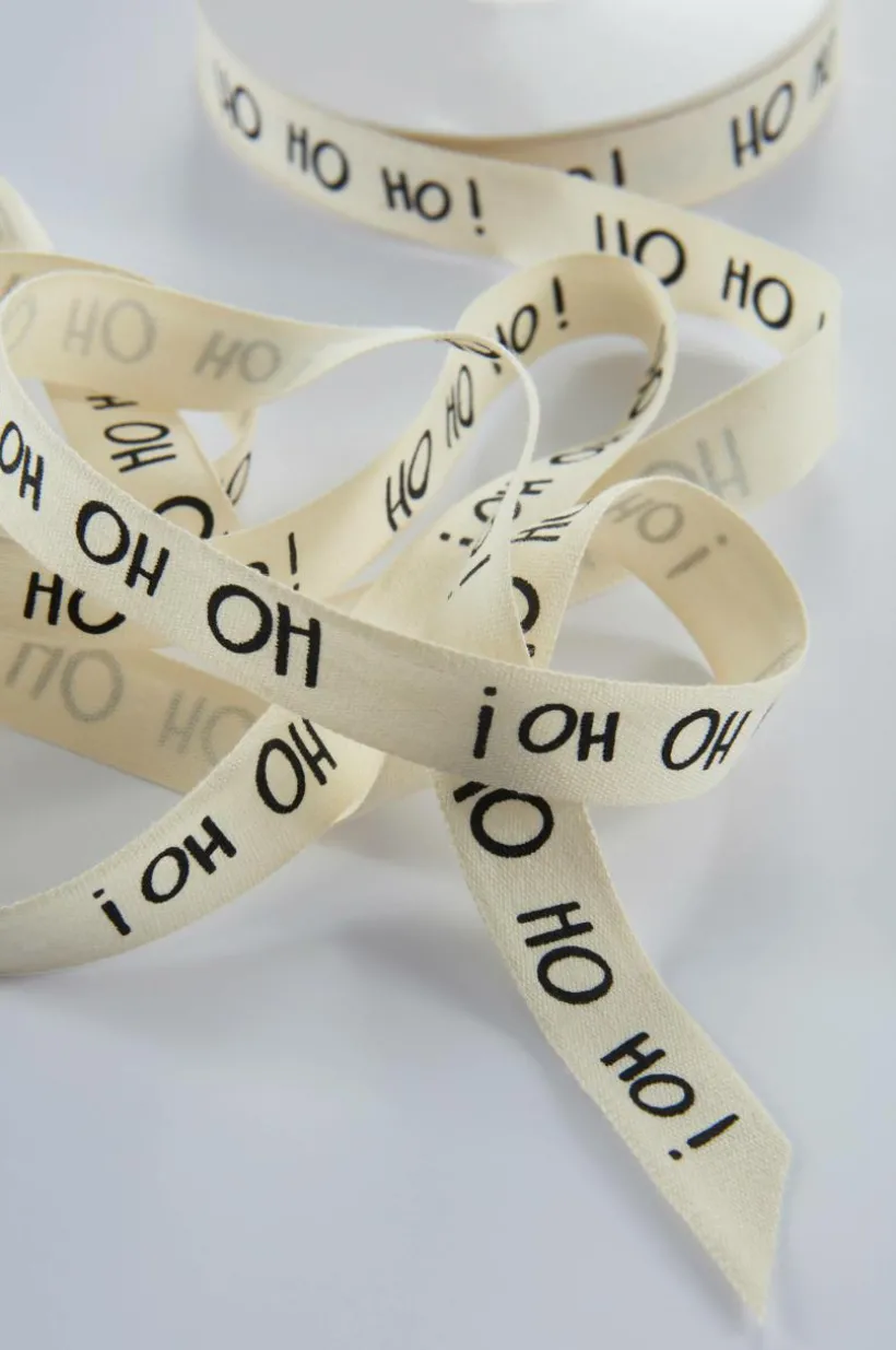 HOHOHO-bandet ger en festlig känsla till dina juldekorationer och presentförpackningar. Bandet är tillverkat av bomull med tryckt text och är den perfekta detaljen för att skapa julstämning i ditt hem.