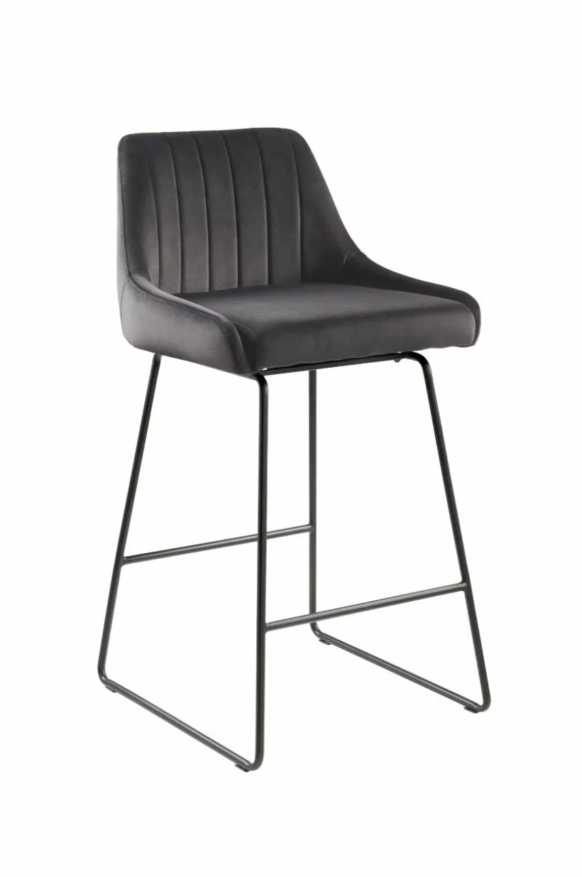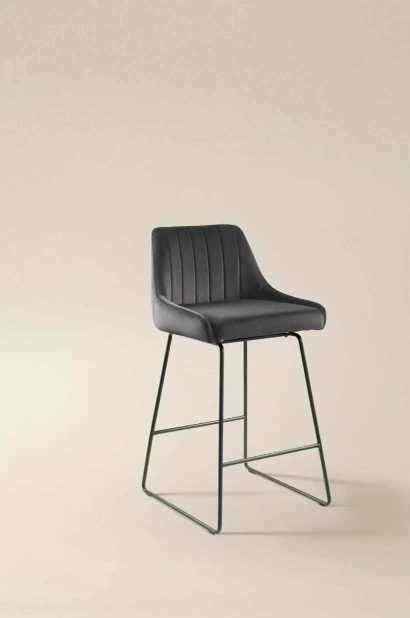 Barstol i sammet med stoppad, polyesterklädd dyna och snyggt formade ben i stål. HOLLIE är en stilren och praktisk barstol med mjuk stoppning som gör att du sitter bekvämt. Tygets slitstyrka är på 28000 Martindale. Viss montering krävs. Monteringsanvisning medföljer.