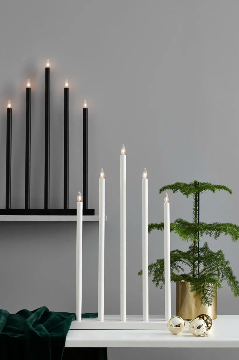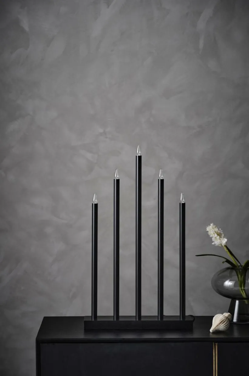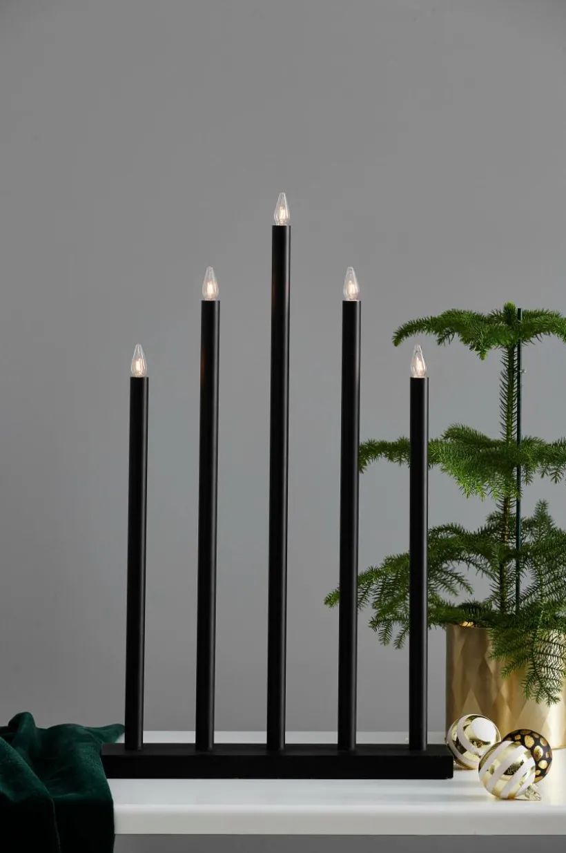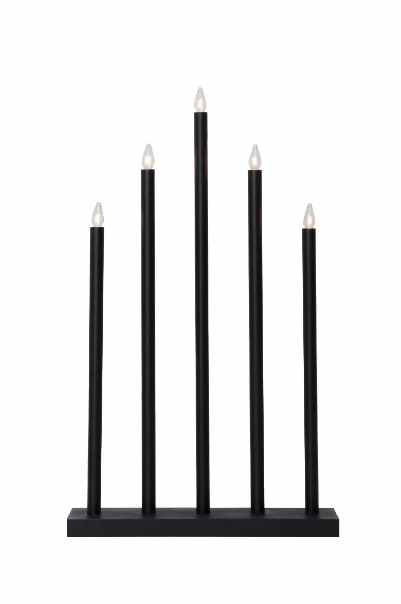 Rak och enkel ljusstake i metall med fem ljuspunkter. För inomhusbruk. Vit textilsladd 1,8 m. Glödlampor medföljer.