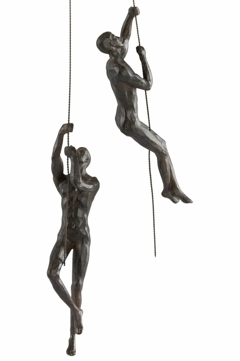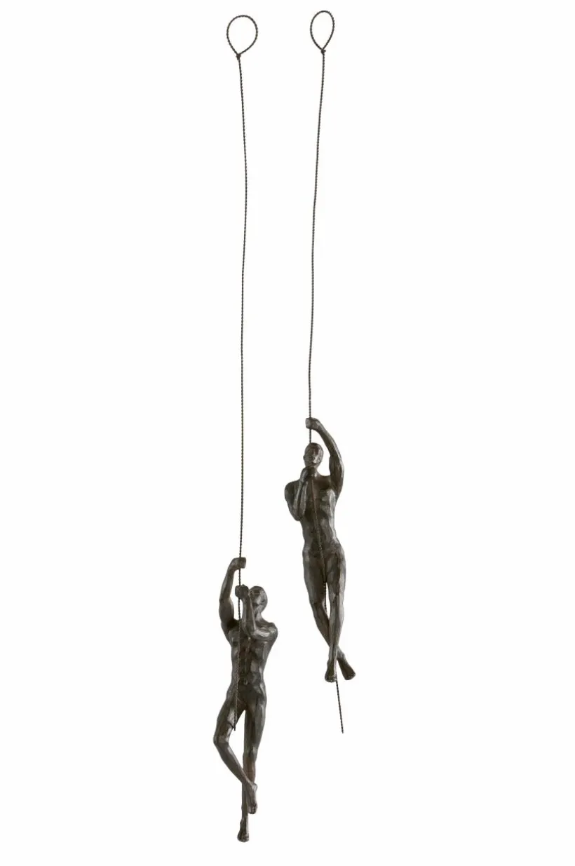 Väggdekoration av av polyresin med två figurer som klättrar upp längs varsin vajer. CLIFFHANGERS blir en spännande dekoration i ditt hem och en snygg detalj som sticker ut.