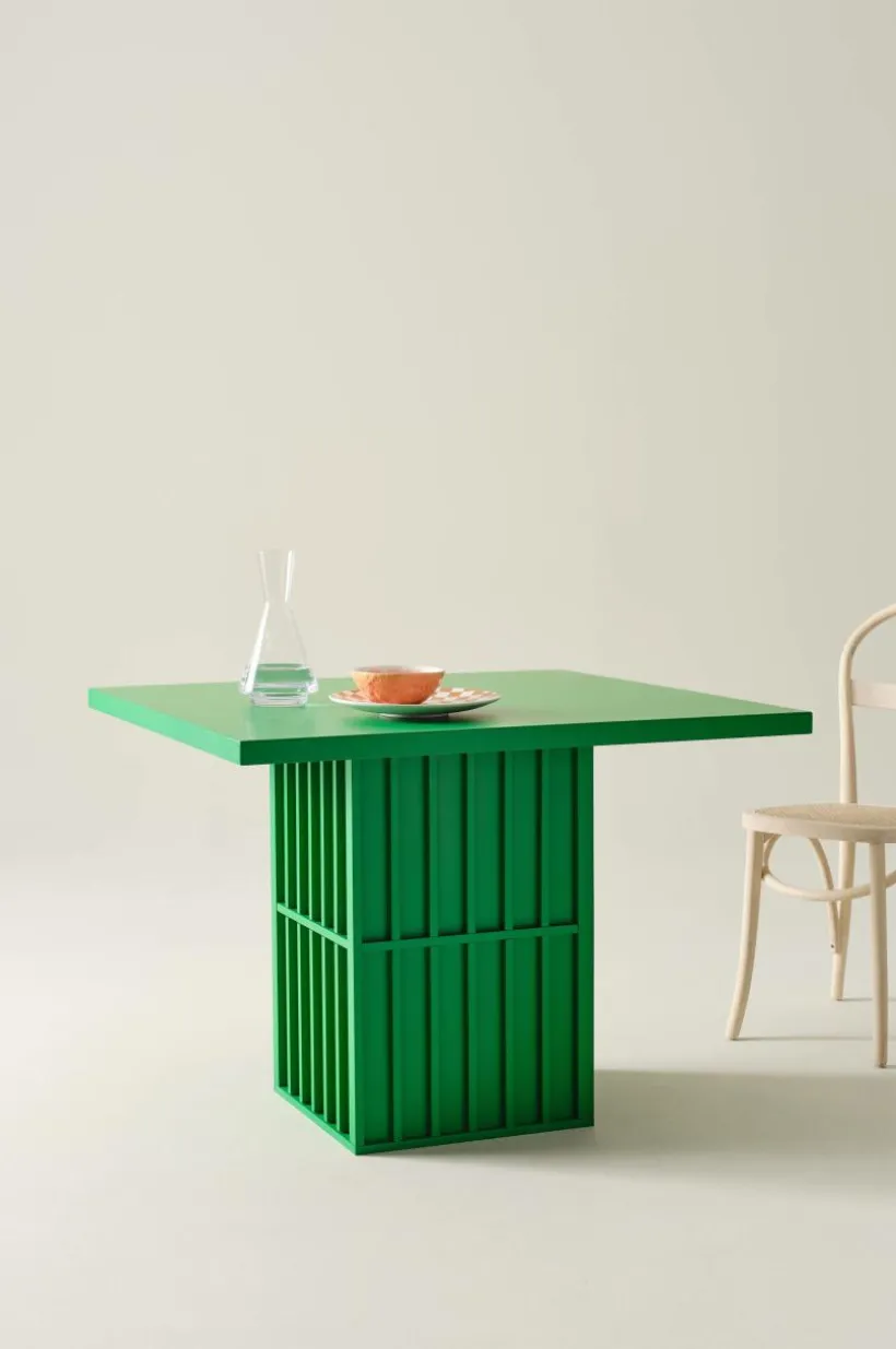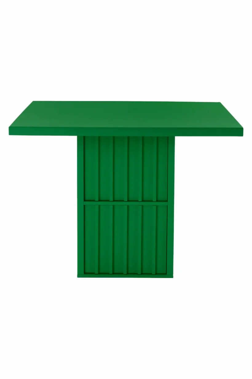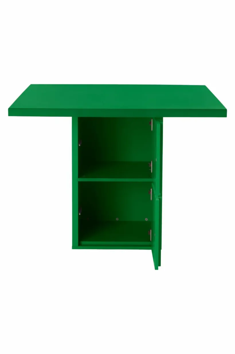 Matbordet IKSEON är kvadratiskt med en pelarfot som rymmer förvaring. Ena sidan av foten har två dolda dörrar med pushfunktion och mjukstängande gångjärn. Foten har alltså två fack, ett upptill och ett nertill, hyllplanet är ej flyttbart. Viss montering krävs. Monteringsanvisning medföljer.