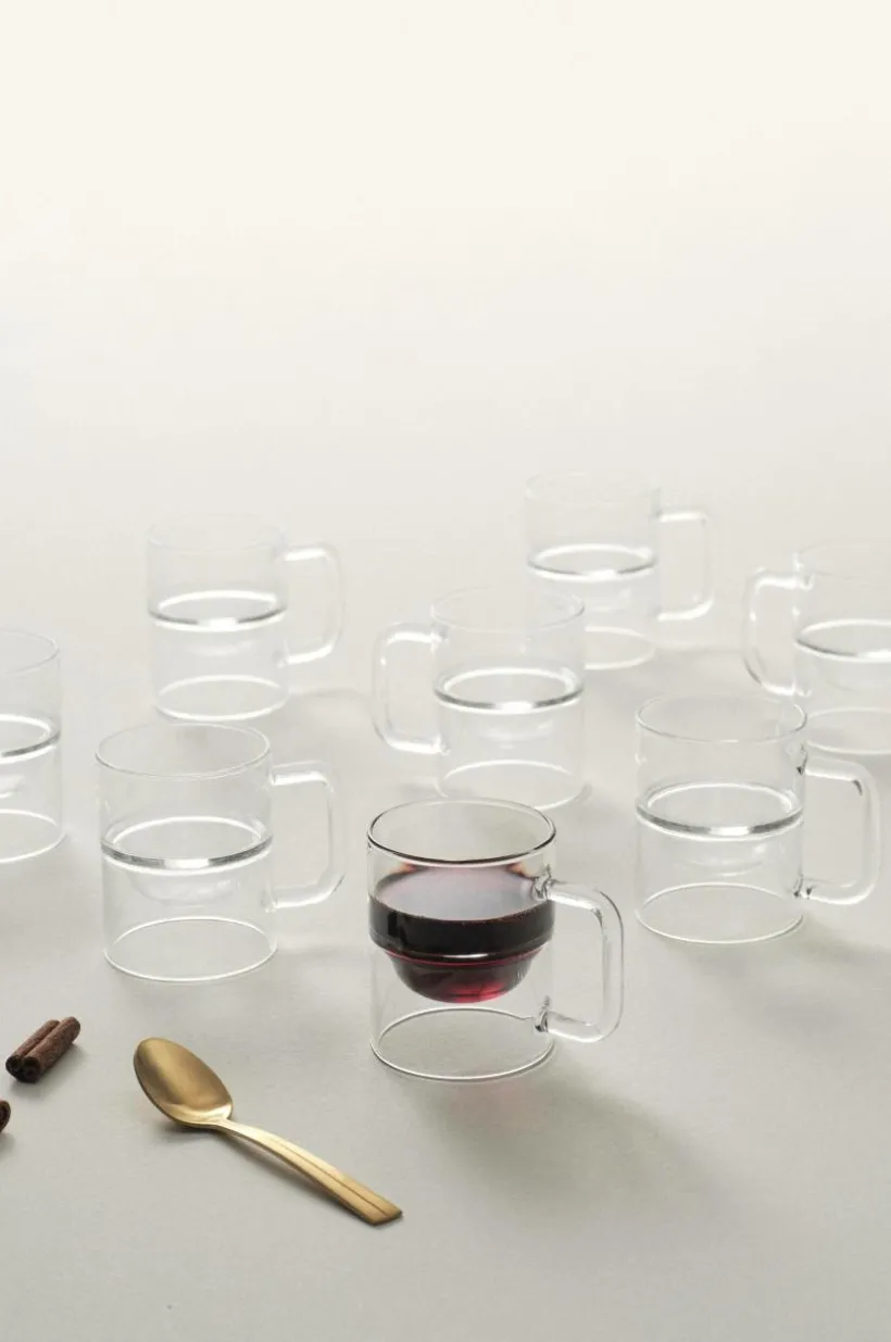 8-pack koppar av glas. Koppen har speciell design med en innermugg som exponerar drycken på ett läckert sätt. Örat är perfekt när du vill dricka exempelvis varm glögg, kaffe eller varm choklad i glas.