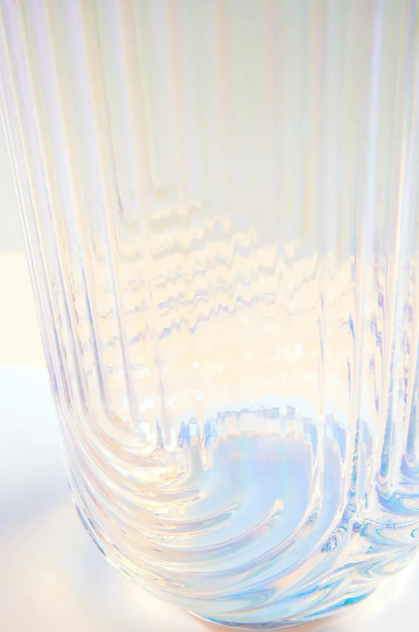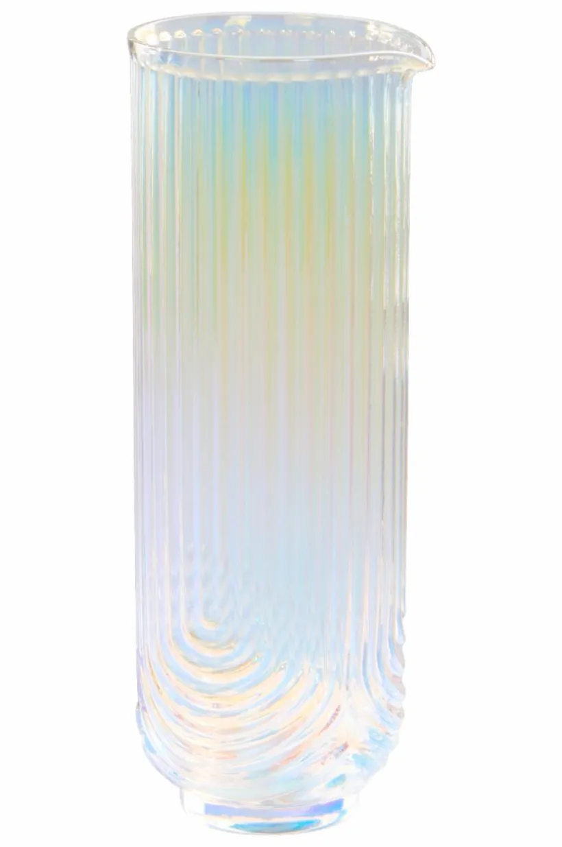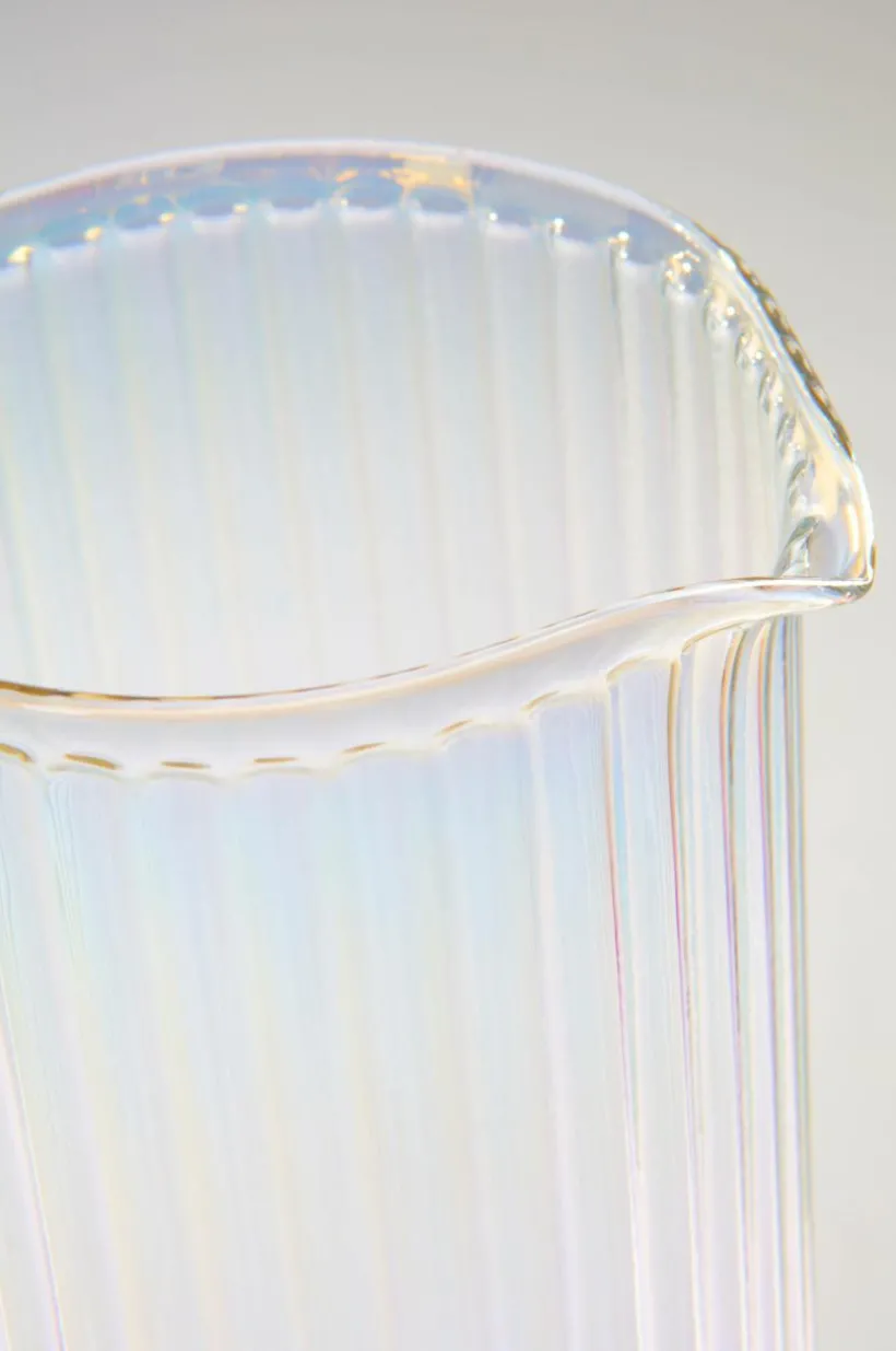 Karaff av färgat glas i snygg form utan handtag. Delarna i glasserien IMANI har fint bågmönster i relief. IMANI ger dig en extra fin dukning, både till vardag och till fest.