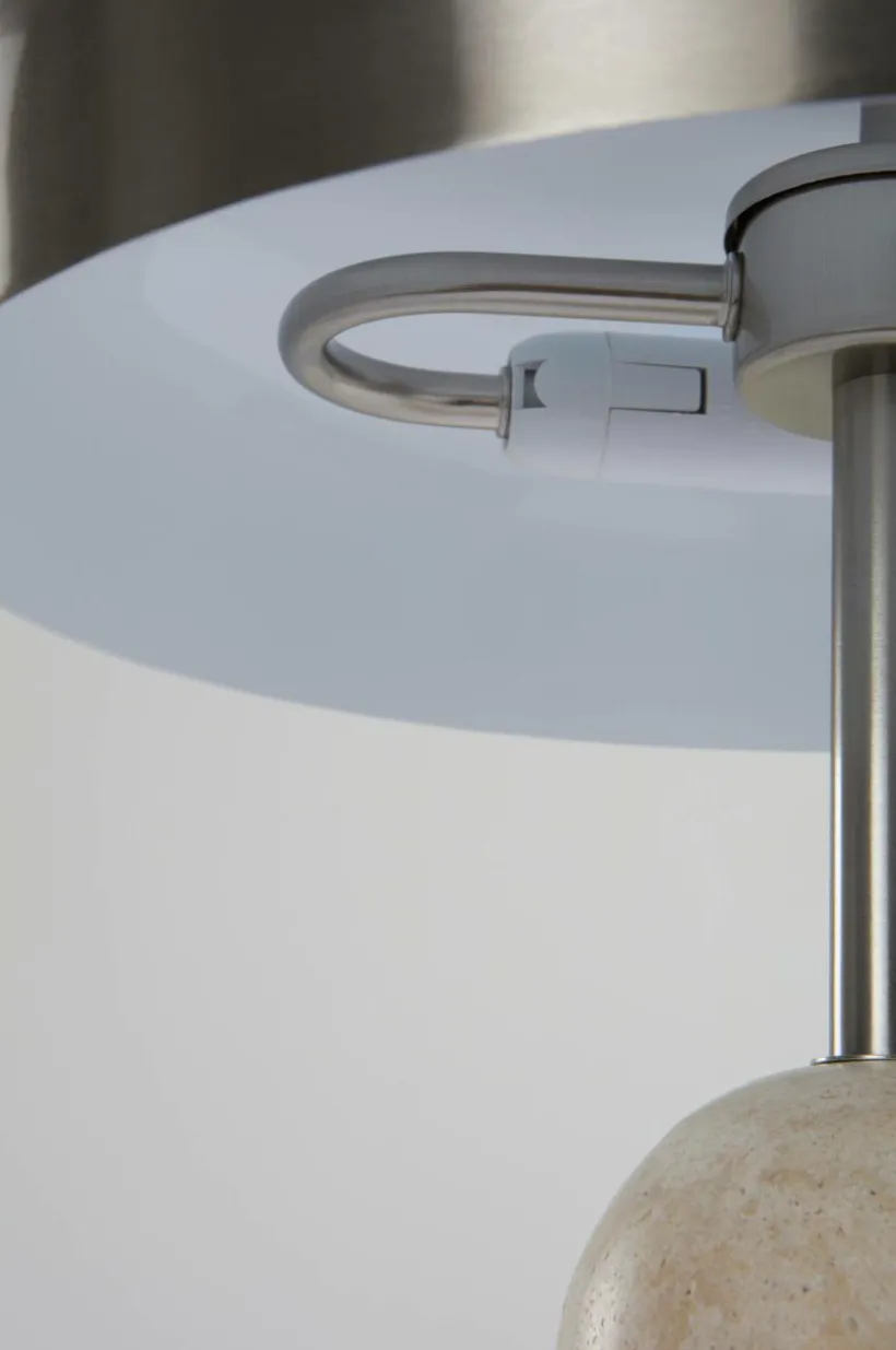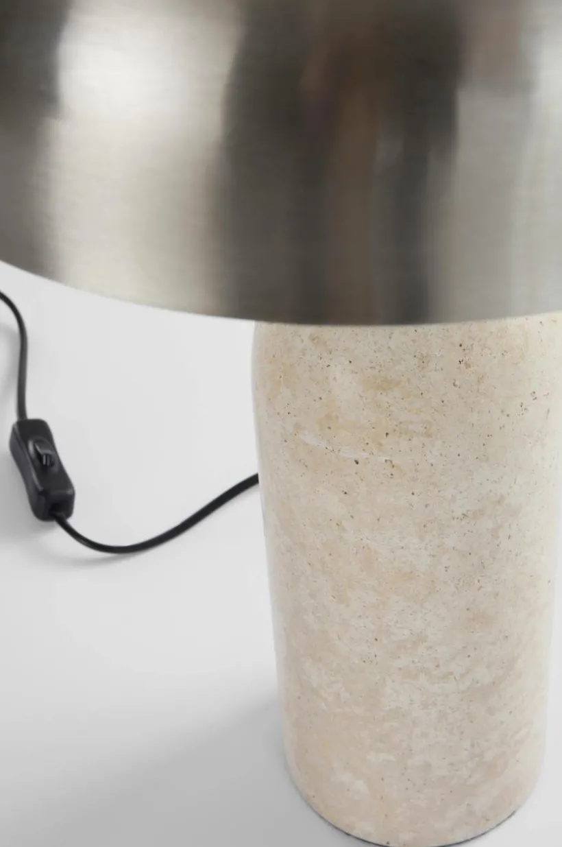 Bordslampan INA kombinerar en lampskärm i järn med en snygg lampfot i travertin. PVC-sladd med handströmbrytare. INA är perfekt för att skapa en mysig atmosfär och ger en varm accent i vardagsrummet, sovrummet eller arbetsrummet.