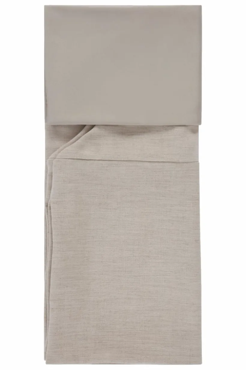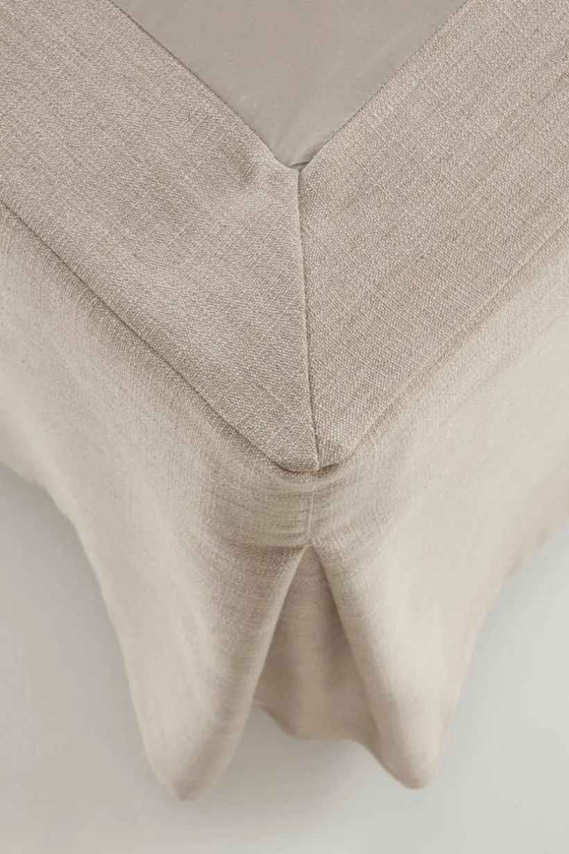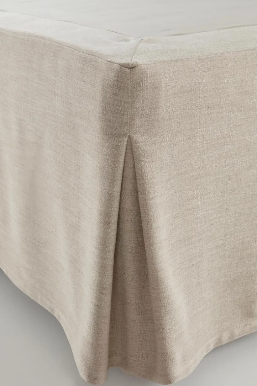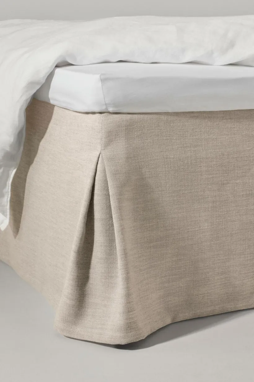 Sängkappa av polyester med litet inslag av lin. Tyget i sängkappan har lätt struktur och fin glans, färgen är melerad. De släta sidorna och sydda hörn med motveck ger en stilig inramning till din säng. Sängkappan är i en lättskött kvalité Tygets gramvikt kjol 160 g/m², topp 80 g/m².