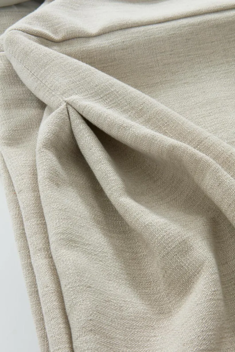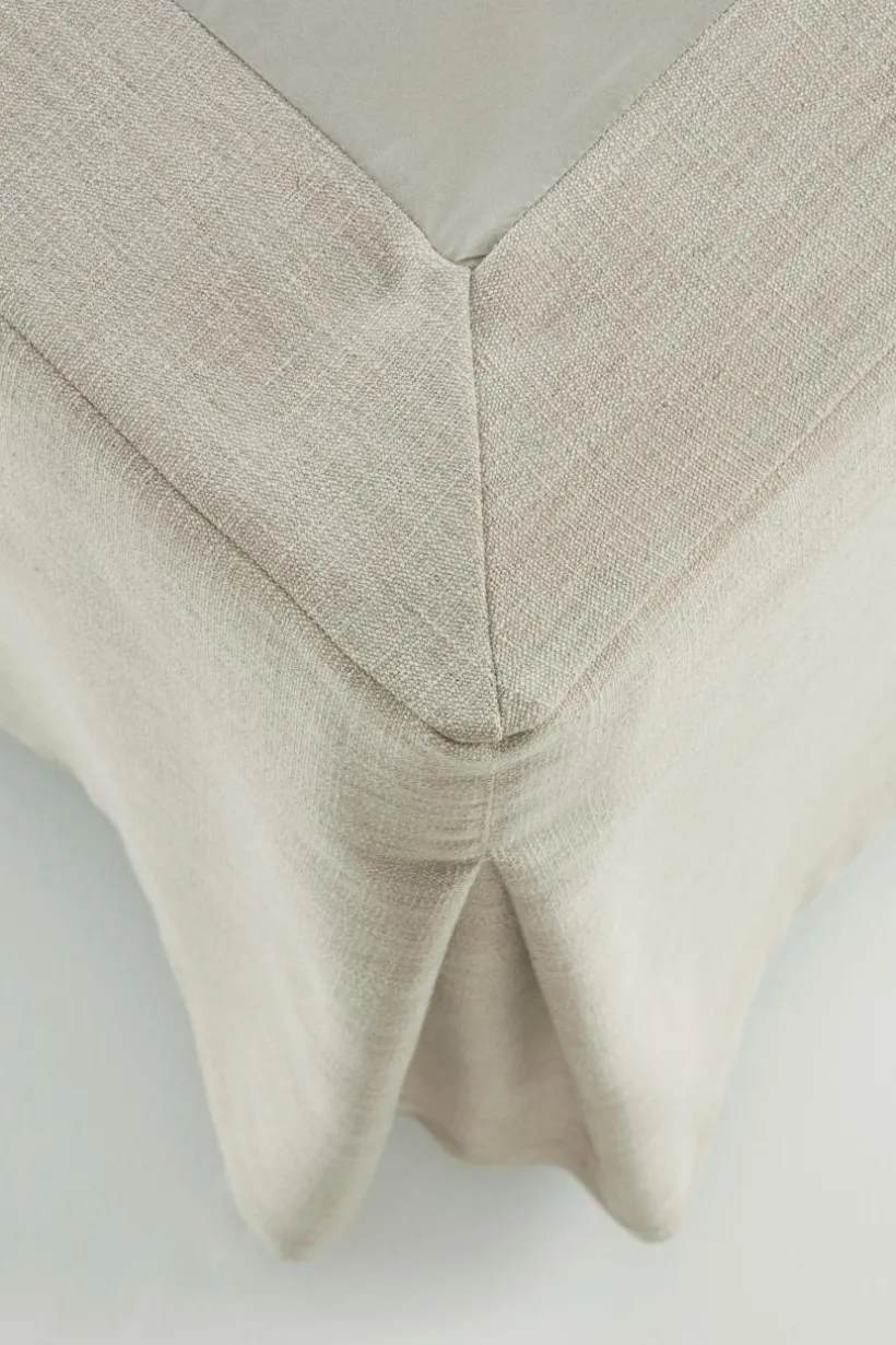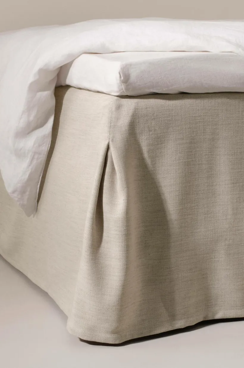 Sängkappa av polyester med litet inslag av lin. Tyget i sängkappan har lätt struktur och fin glans, färgen är melerad. De släta sidorna och sydda hörn med motveck ger en stilig inramning till din säng. Sängkappan är i en lättskött kvalité Tygets gramvikt kjol 160 g/m², topp 80 g/m².
