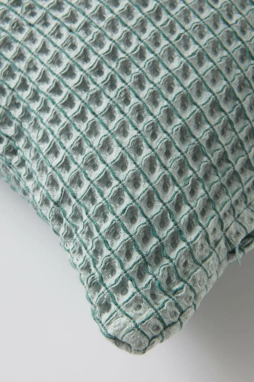 1-pack kuddfodral i ett mjukt, våfflat bomullstyg. INDIGO har våffelrutor som ramas in av diskreta, garnfärgade rutor vilket förstärker 3D-effekten på ett fint sätt. Kuddfodralet har dragkedja i nederkant.