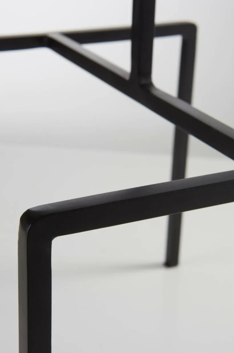 Sidobord med bordsskiva av marmor och underrede av järn med mattlackerad yta. Stommen är av fyrkantsprofil och benen är snyggt formade. Marmor är en natursten och mönstret varierar alltid lite beroende på bergartens sammansättning, vilket gör varje möbel unik. Ett snyggt och stilistiskt bord som passar in i många olika stilar.