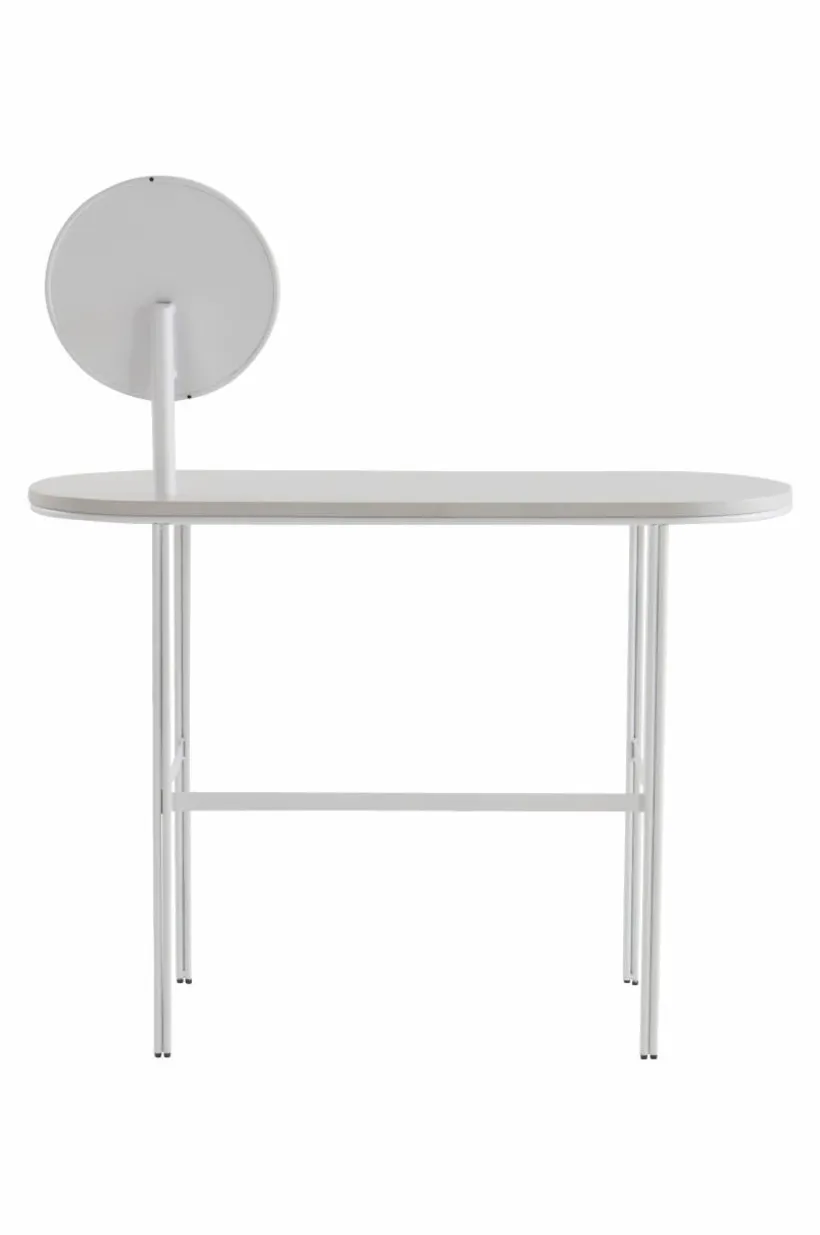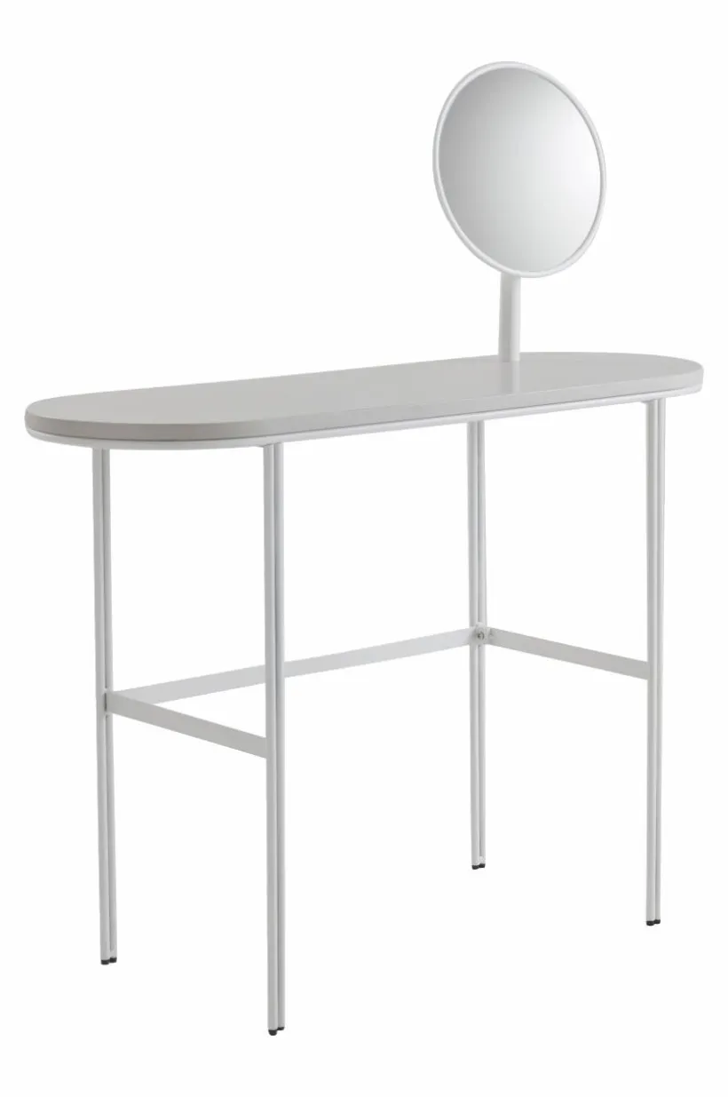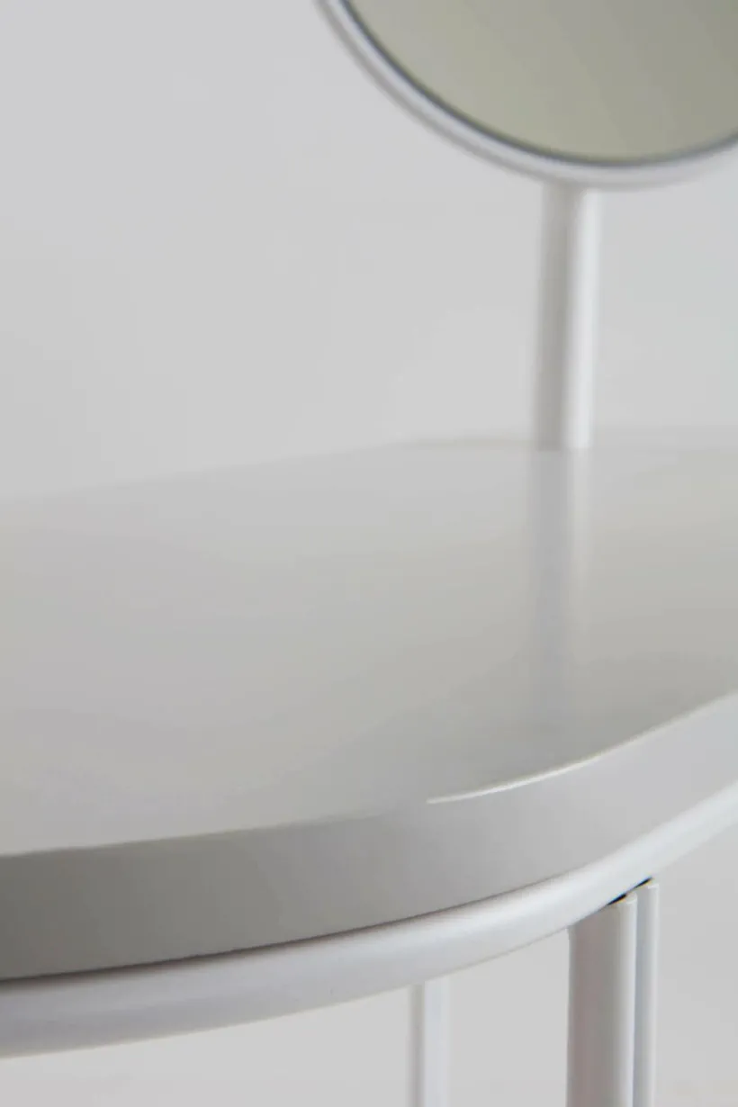 ISOLA sminkbord har en rund spegel, perfekt för din morgonrutin. Sminkbordet passar utmärkt i ett tonårsrum eller varför inte i en walk-in closet? Ben av järnrör med en elegant bordsskiva av MDF ger en modern touch. Förhöj din inredning med denna snygga och funktionella möbel.