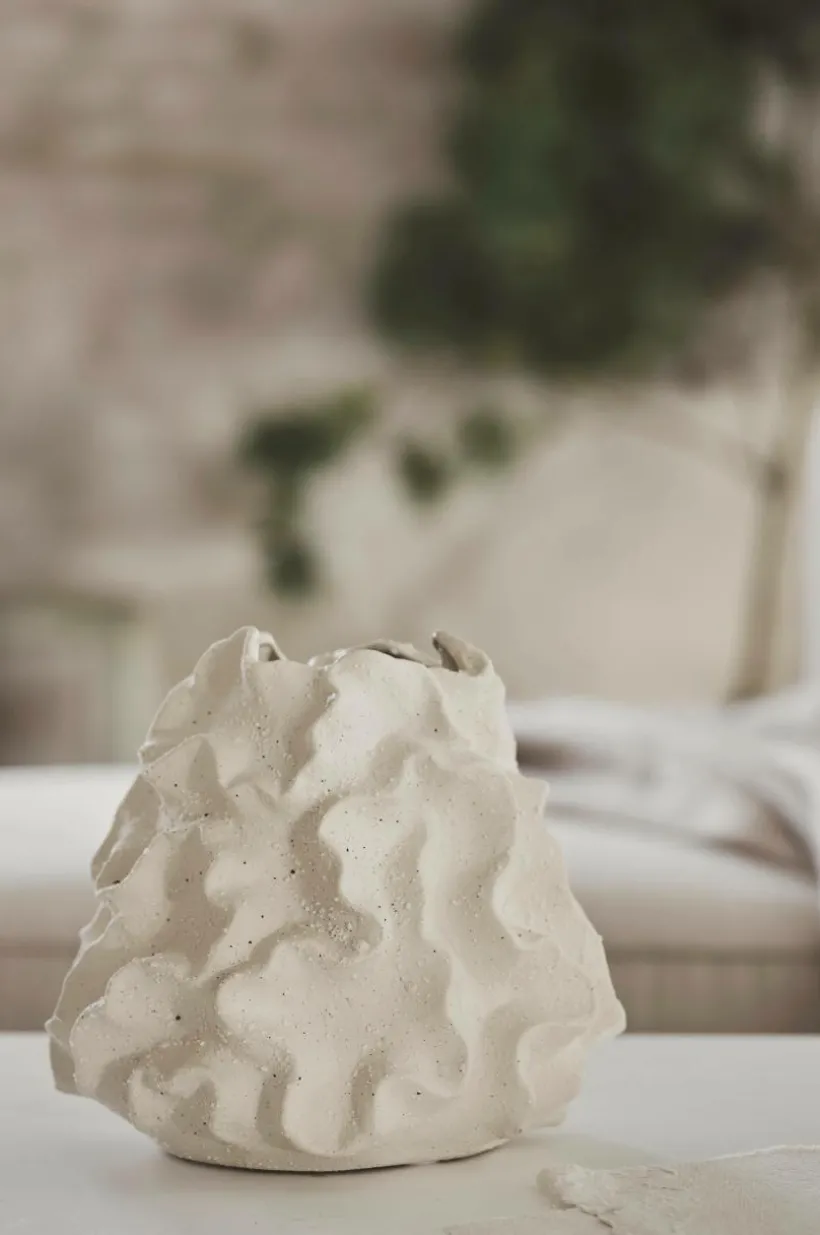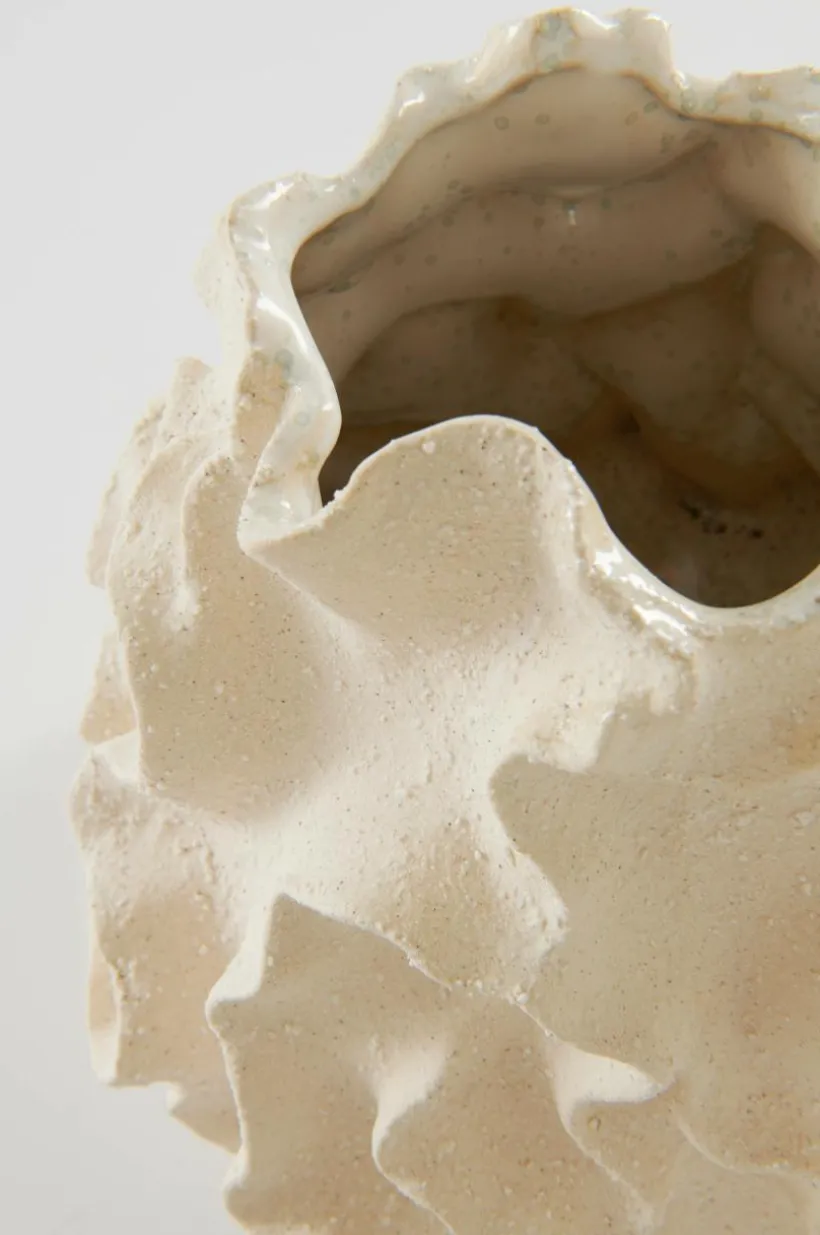 Vas av keramik. IVA är handgjord och har oregelbunden form som påminner om havets koraller. Utsidan är matt med sandstruktur, insidan är glaserad. Viss avvikelse kan förekomma eftersom vasen är handgjord. Keramik kan släppa igenom fukt.