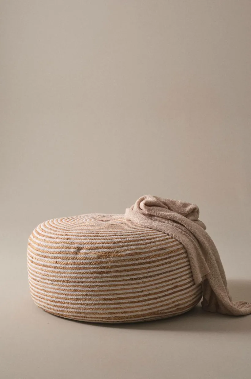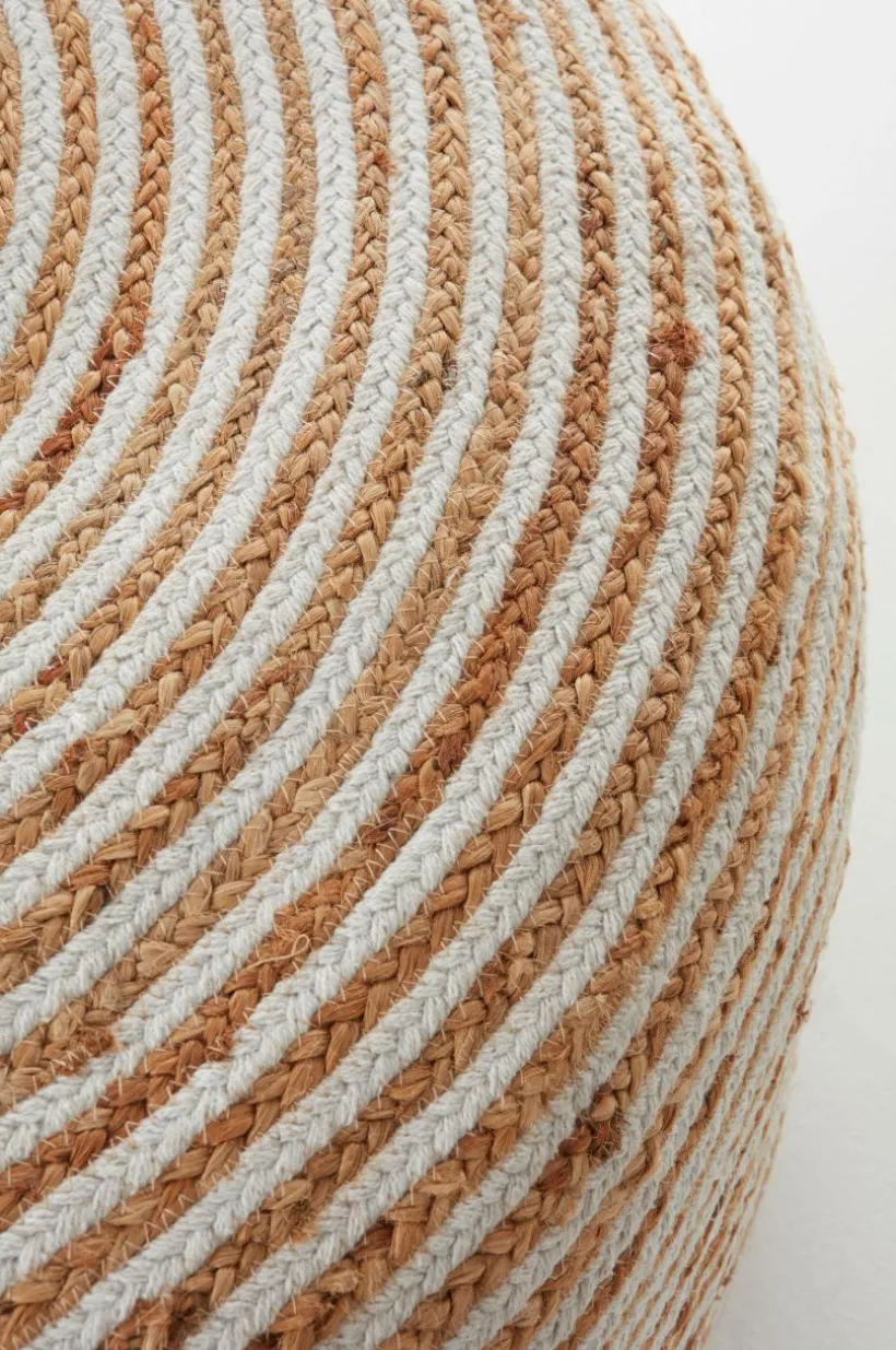 Handvävd sittpuff av jute och bomull med fyllning av cellplastkulor som gör den lagom mjuk. Puffen får en härligt naturlig känsla tack vare materialet av jute och bomull som känns äkta och naturnära. Det fina hantverket gör varje sittpuff unik. Klädseln är inte avtagbar.