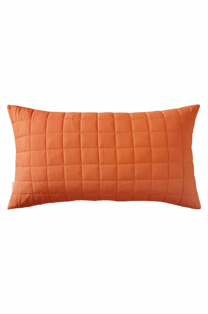 1-pack enfärgade kuddfodral i mjuk, tvättad mikrofiberkvalité av polyester. Kuddfodralen får sitt diskreta rutmönster av quiltsömmarna som håller polyesterfyllningen på plats. En söm följer kanten runt om. Dold dragkedja i nederkant.
