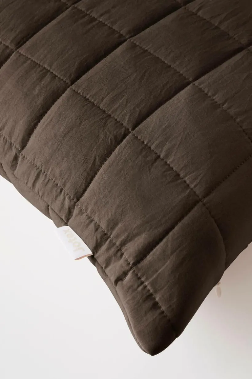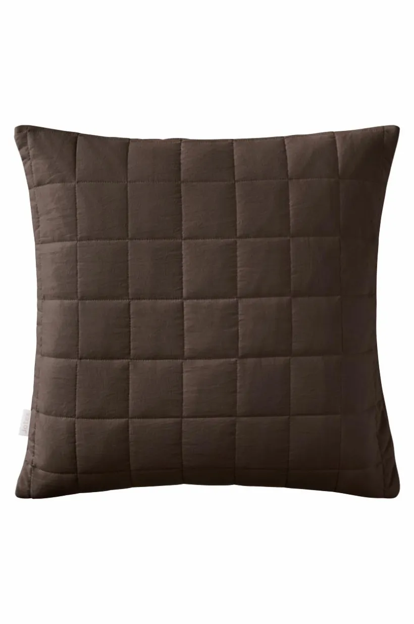 1-pack enfärgade kuddfodral i mjuk, tvättad mikrofiberkvalité av polyester. Kuddfodralen får sitt diskreta rutmönster av quiltsömmarna som håller polyesterfyllningen på plats. En söm följer kanten runt om. Dold dragkedja i nederkant.