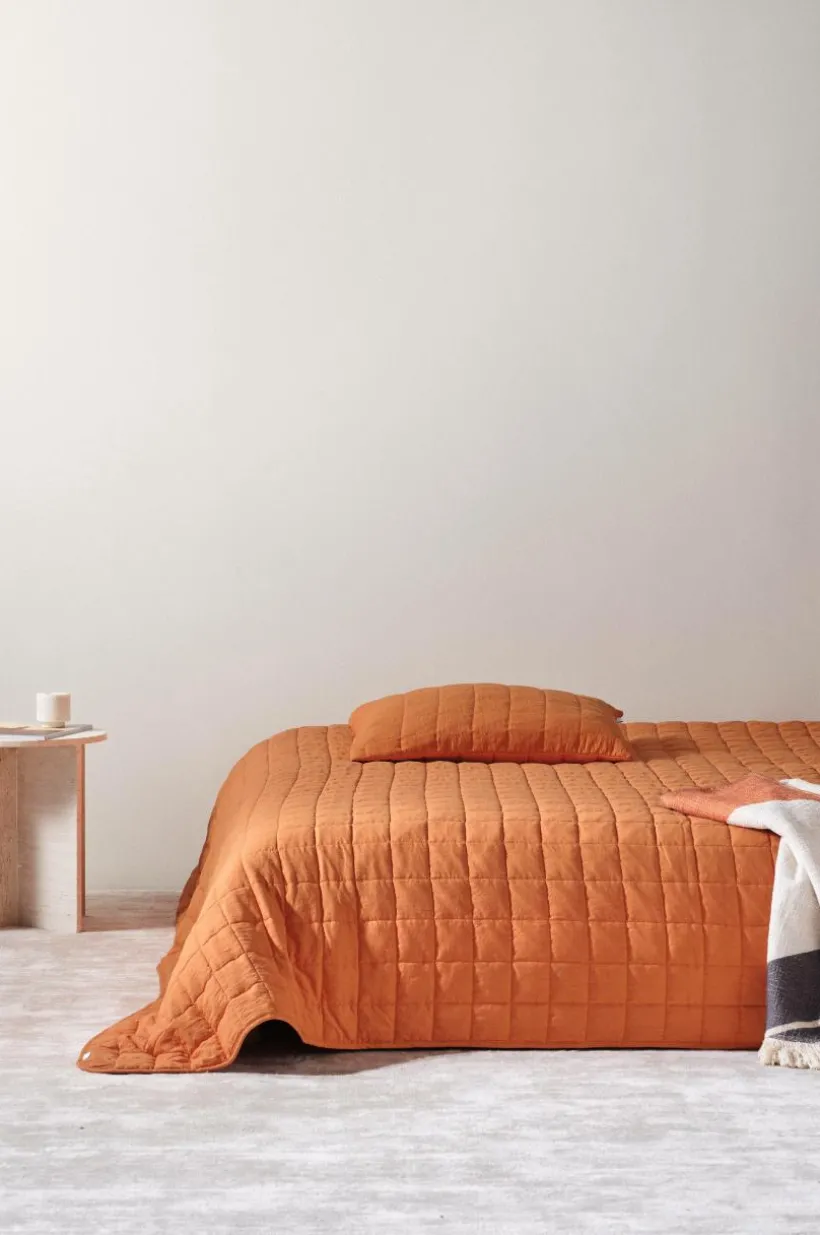 Enfärgat överkast i mjuk, tvättad mikrofiberkvalité av polyester. Överkastet får sitt diskreta rutmönster av quiltsömmarna som håller polyesterfyllningen på plats. Det har rundade hörn och en söm följer kanten runt om. JARA är ett smidigt överkast, varken tungt eller klumpigt utan helt enkelt lätt att bädda med.
