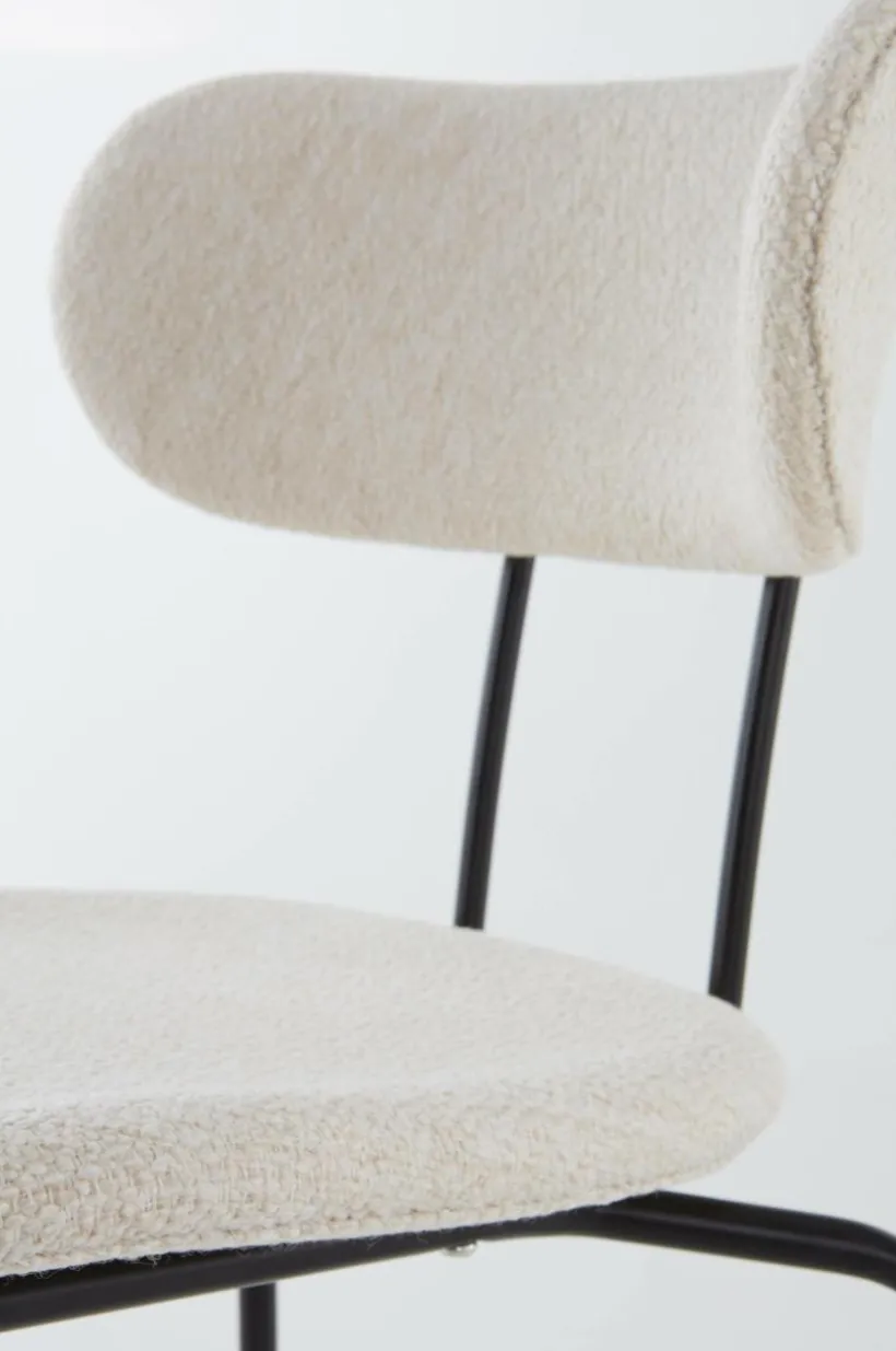 2-pack stolar med sits och ryggstöd som är lätt vadderade och textilklädda, benen är av pulverlackerad stål. Tyget är lätt melerat och har fin struktur. Det är mycket slitstarkt med Martindale på 40000. Med smalt, skålat ryggstöd blir stolen nätt och lättplacerad. Viss montering krävs. Monteringsanvisning medföljer.