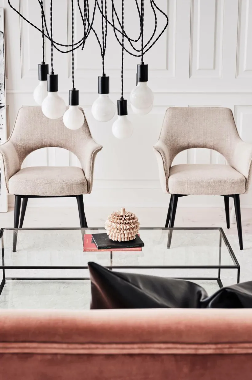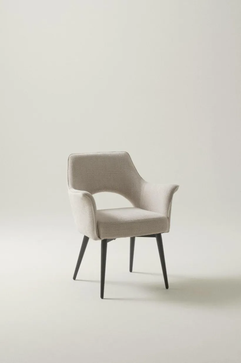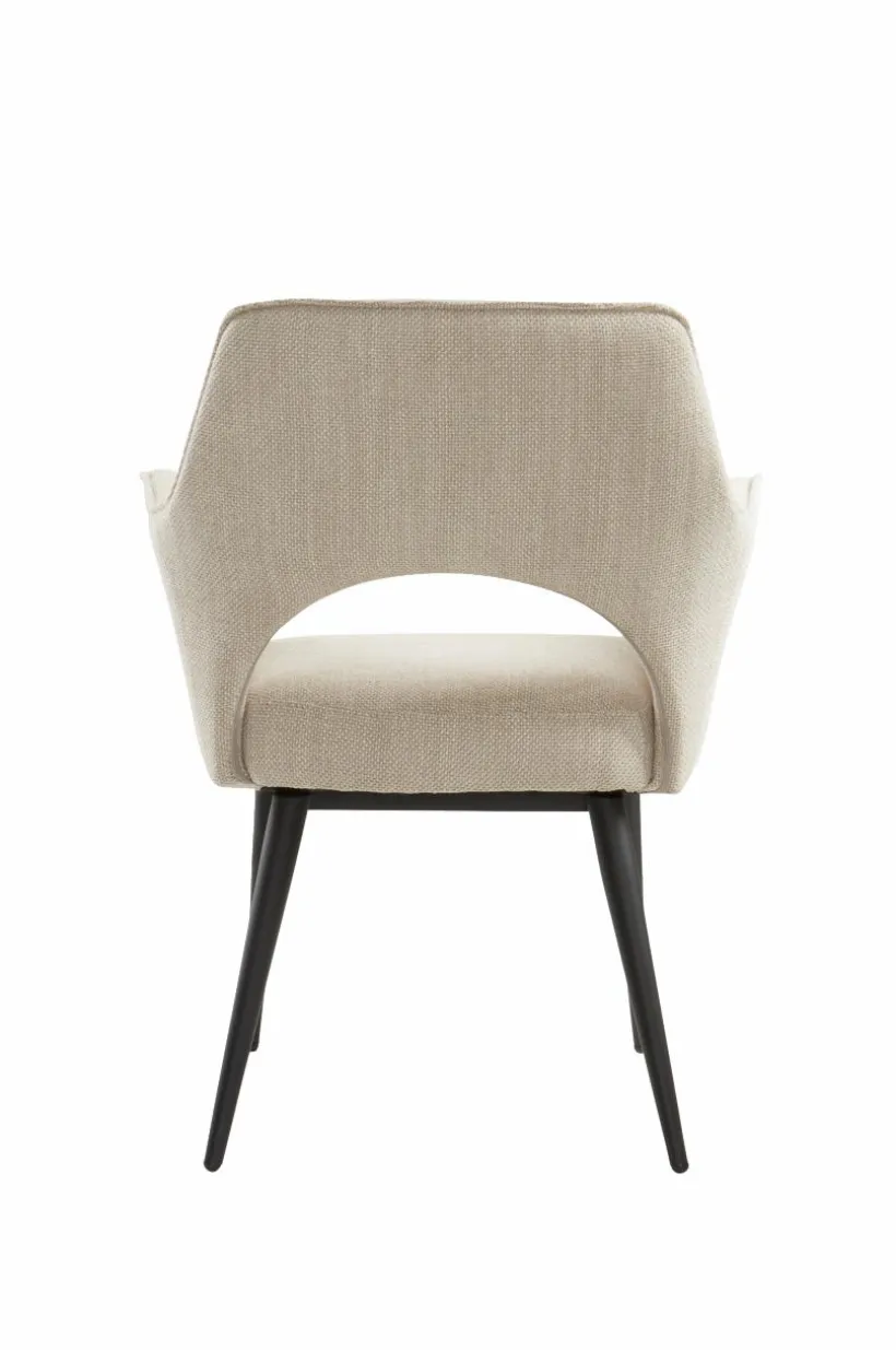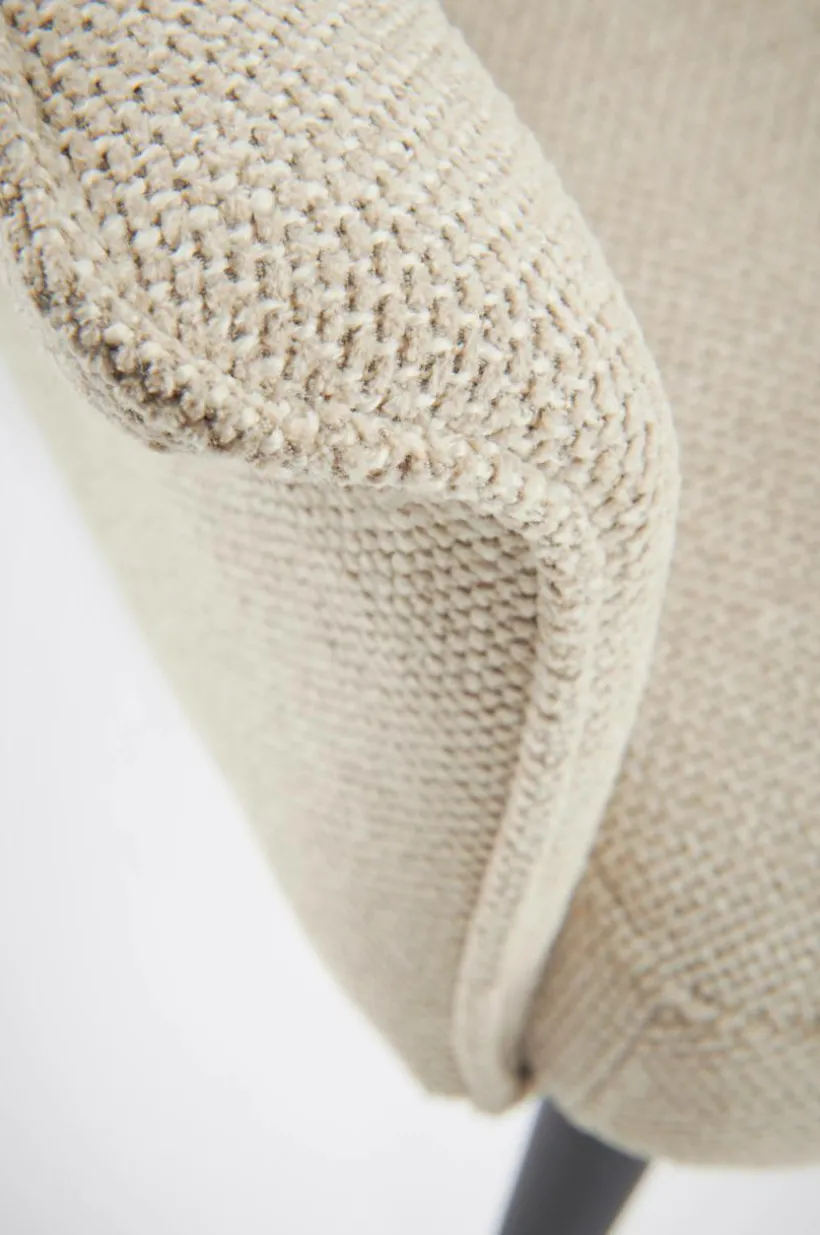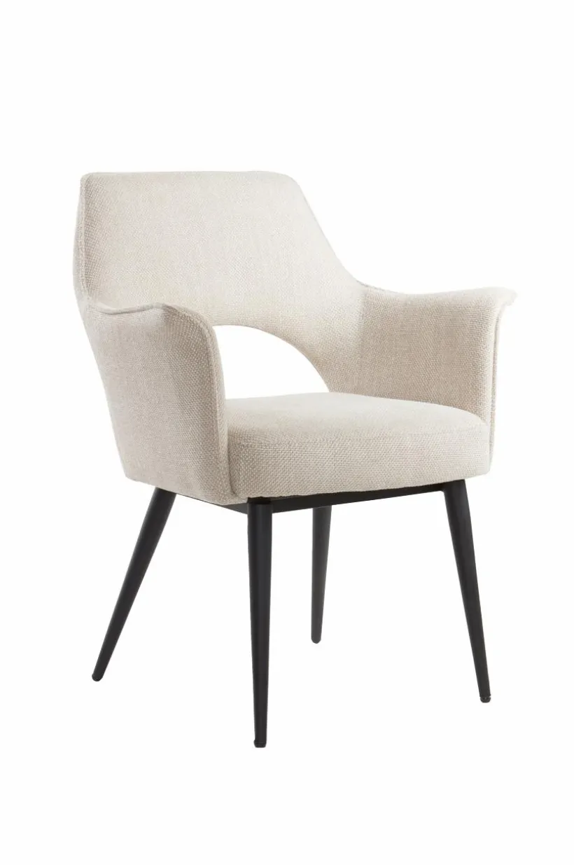 Karmstol med stoppad, polyesterklädd dyna och snyggt formade ben i stål. JESOLO är en stilren karmstol med mjuk skumfyllning som gör att du sitter bekvämt vid köksbordet. Klädseln är ett tyg med lite grövre struktur och lätt melerad effekt. Tyget är slitstarkt med Martindale på 50000. Klädseln är ej avtagbar. Viss montering krävs. Monteringsanvisning medföljer.