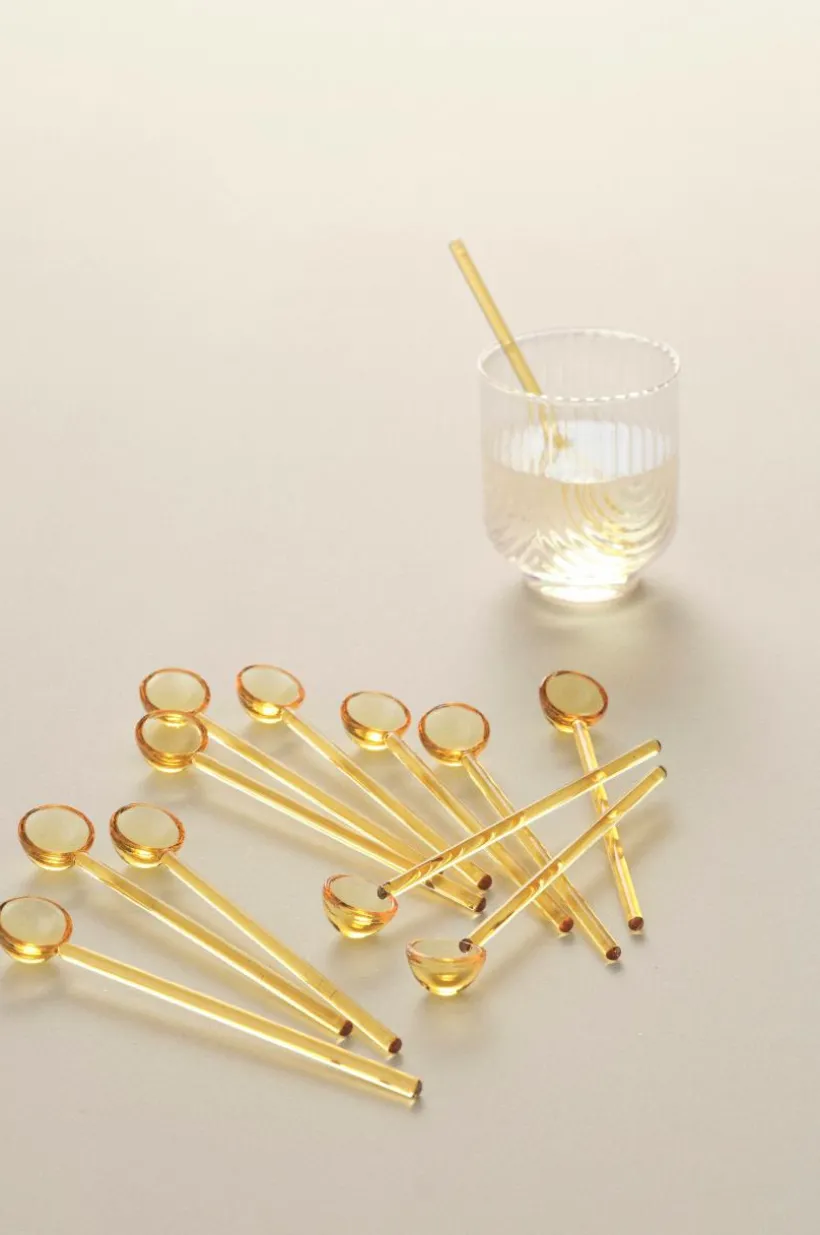 12-pack skedar av färgat glas. De festliga skedarna fungerar till varma drycker och kalla drycker.