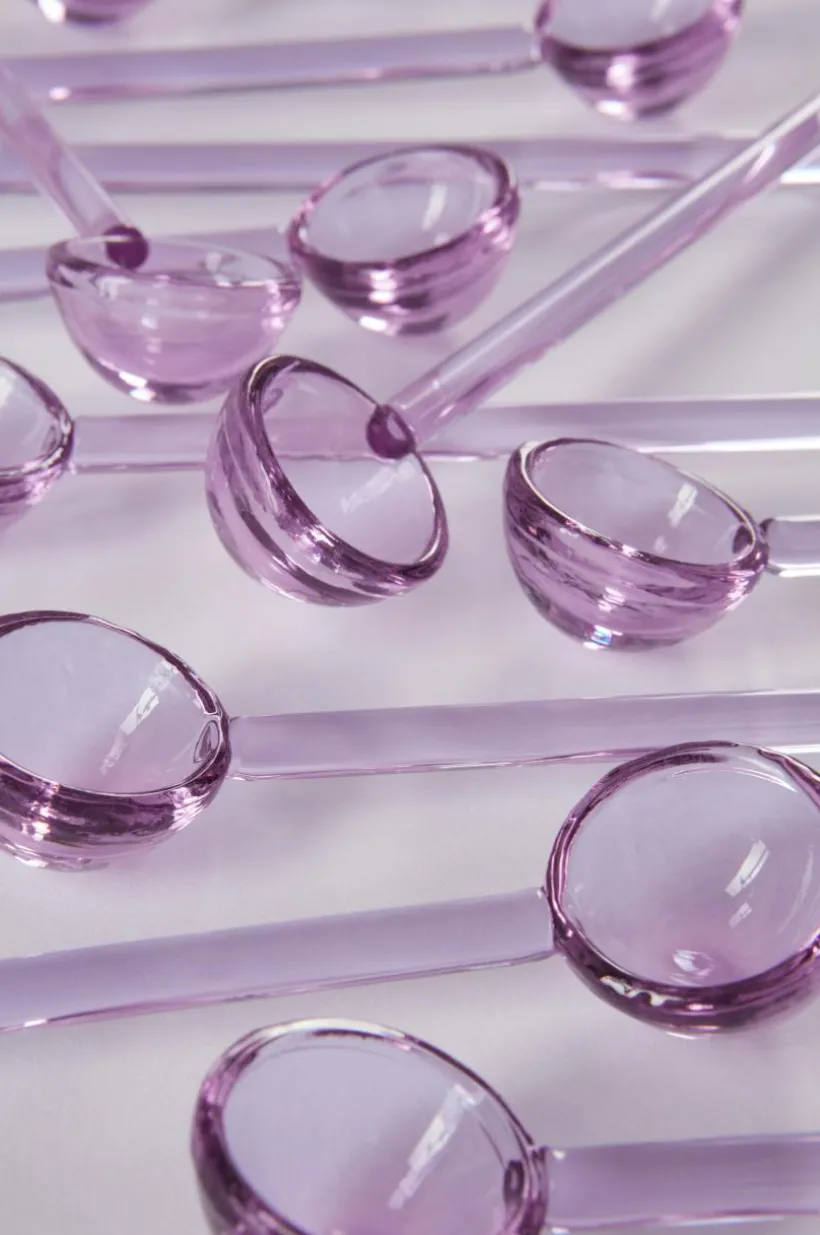 12-pack skedar av färgat glas. De festliga skedarna fungerar till varma drycker och kalla drycker.