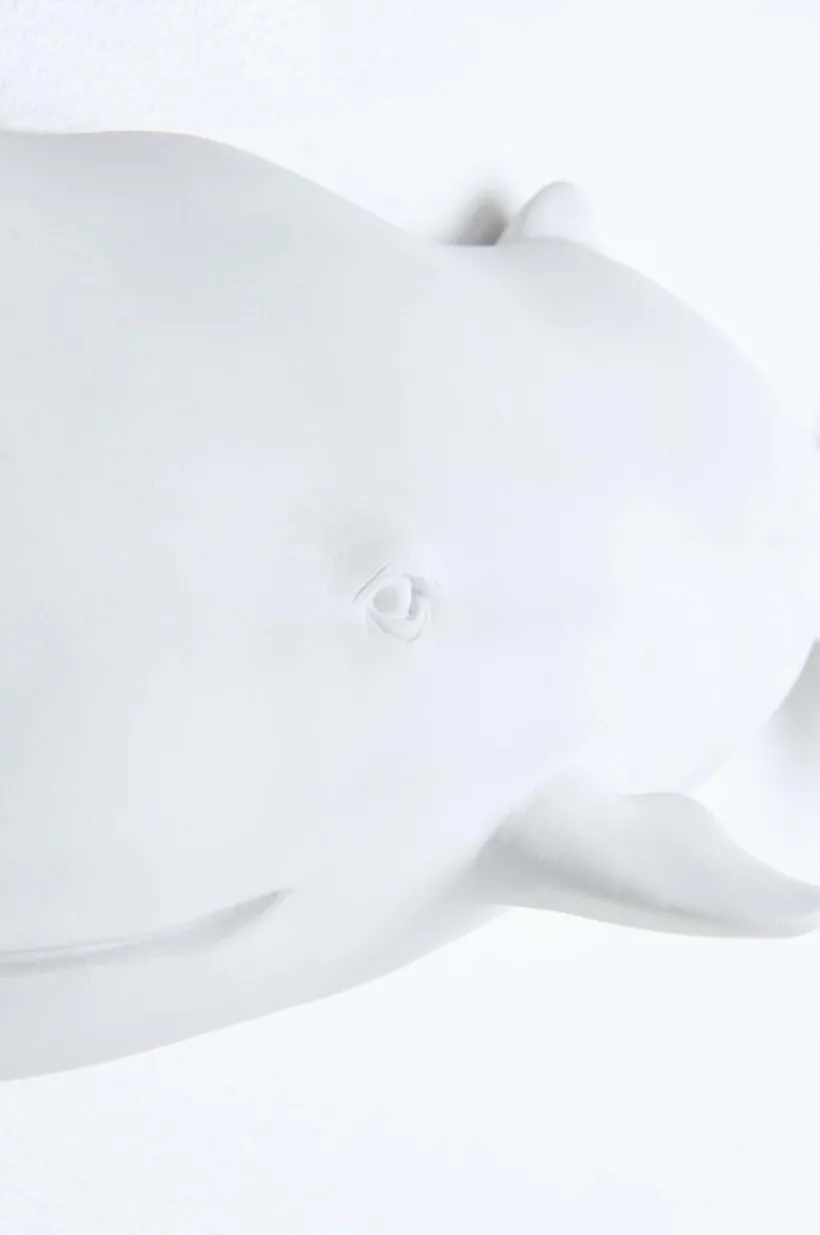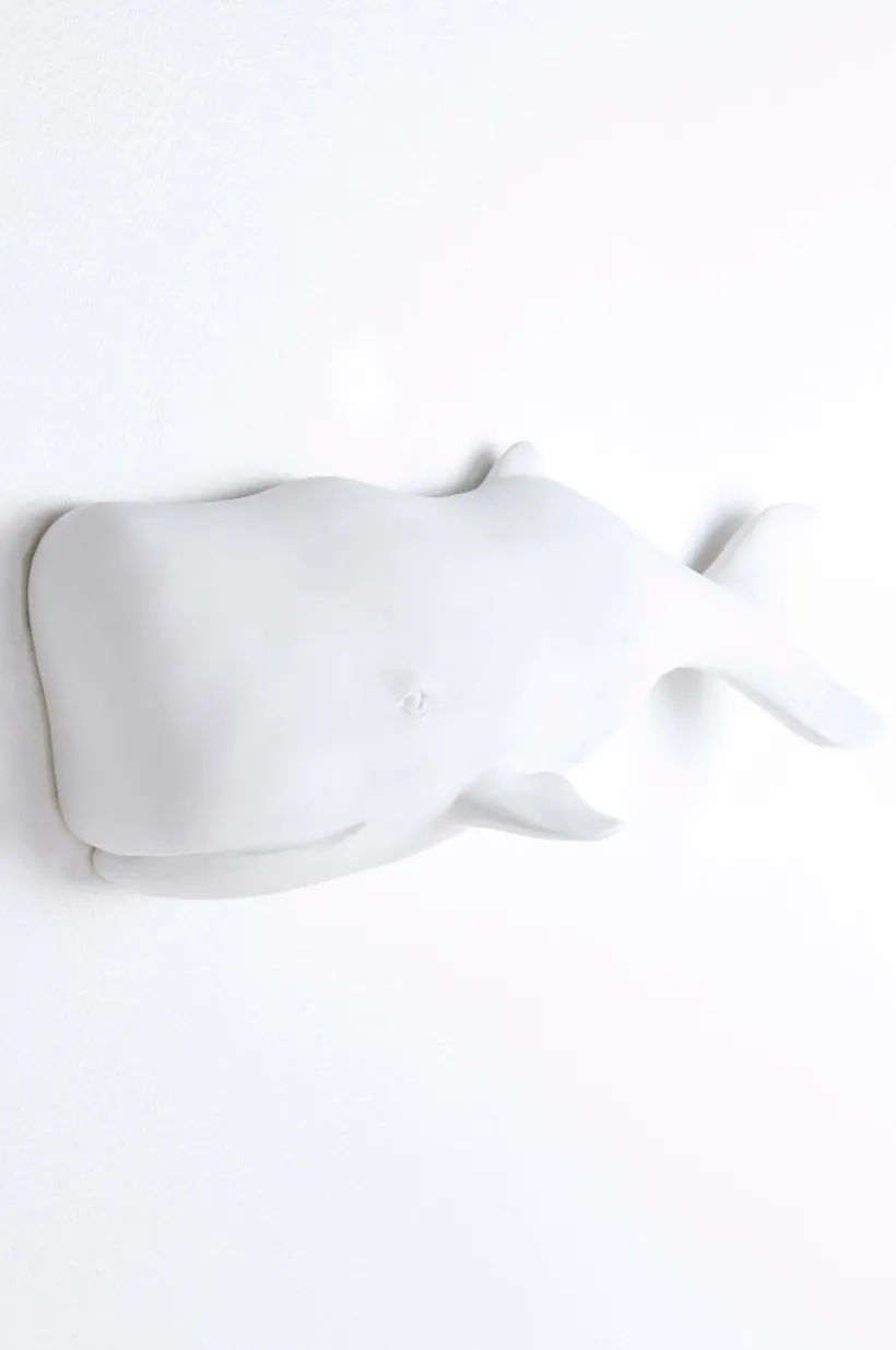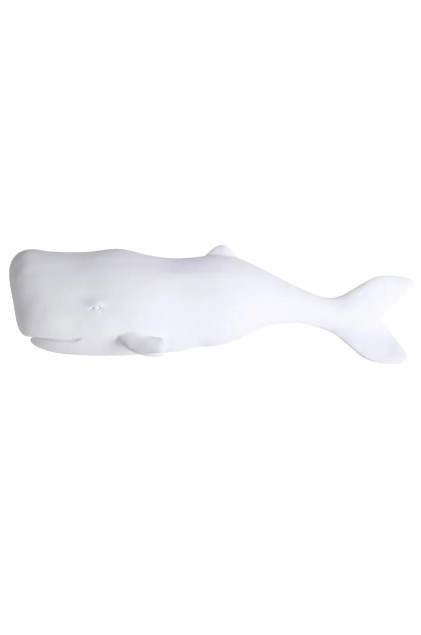 Väggdekoration av polyresin i form av en fin val med helt matt yta. Valen har hål på baksidan för upphängning.