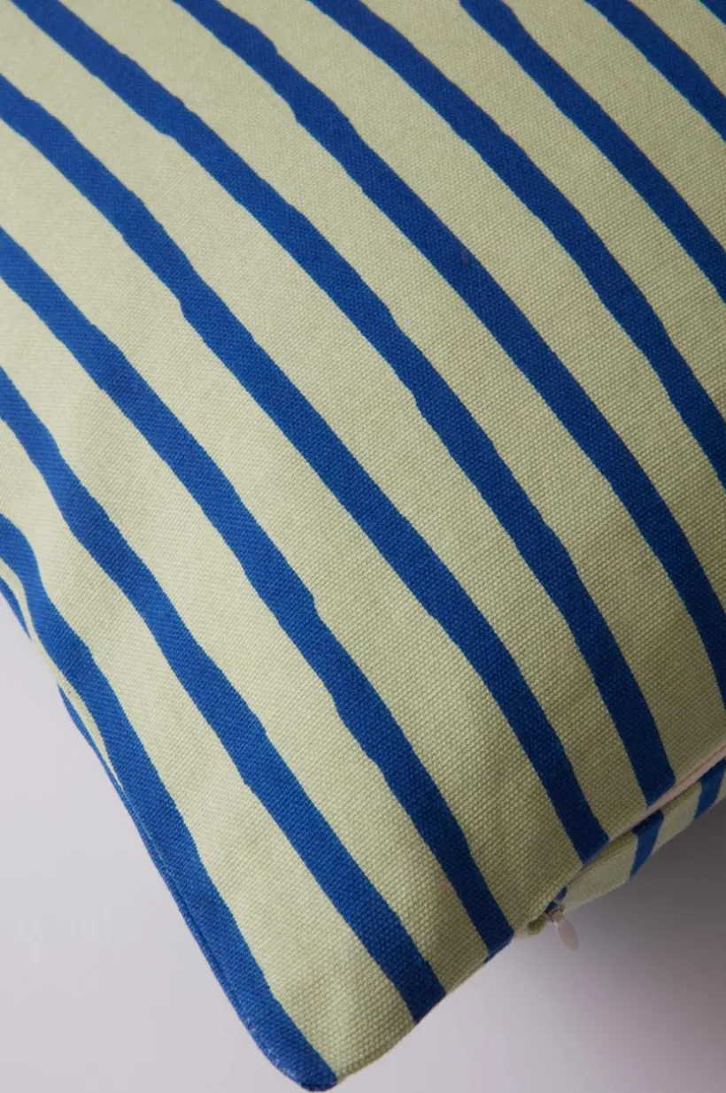 1-pack kuddfodral med tryckt, aningen oregelbundet randmönster på ljusare botten. Både framsidan och baksidan är mönstrade. Dragkedja i nederkant.