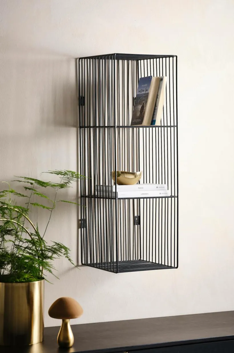Vägghylla av metall. Hyllan kan hängas både lodrätt och vågrätt. Stilren och smidig modell med hål för upphängning.