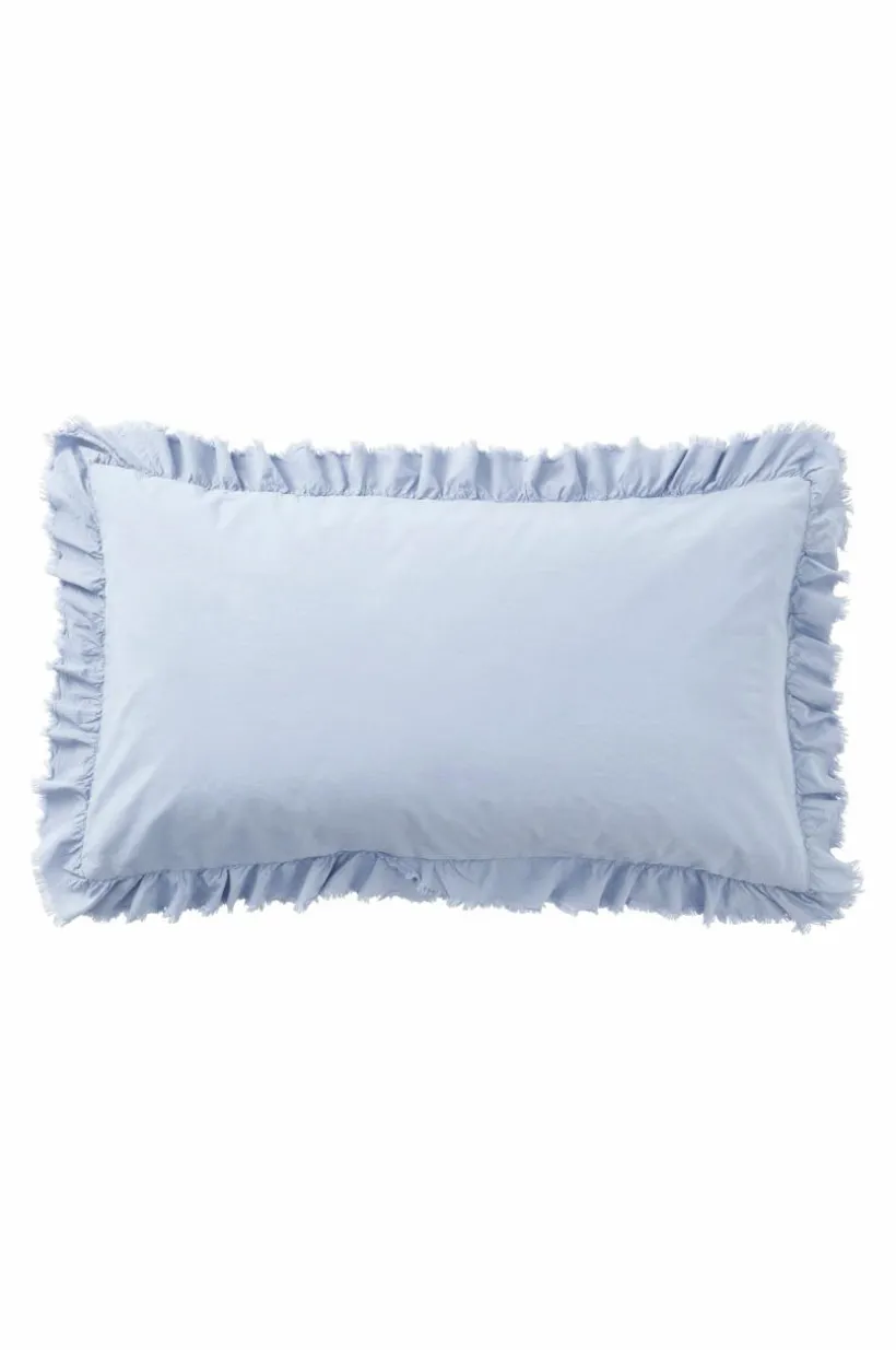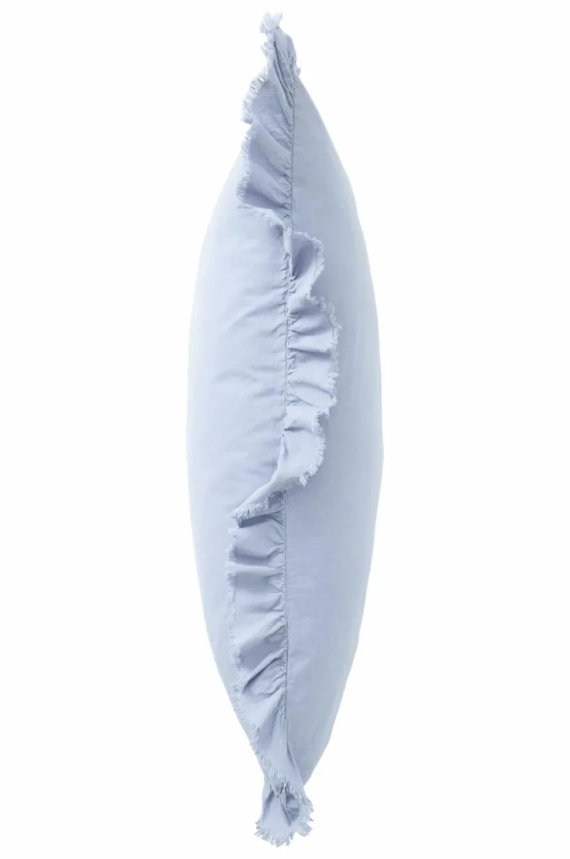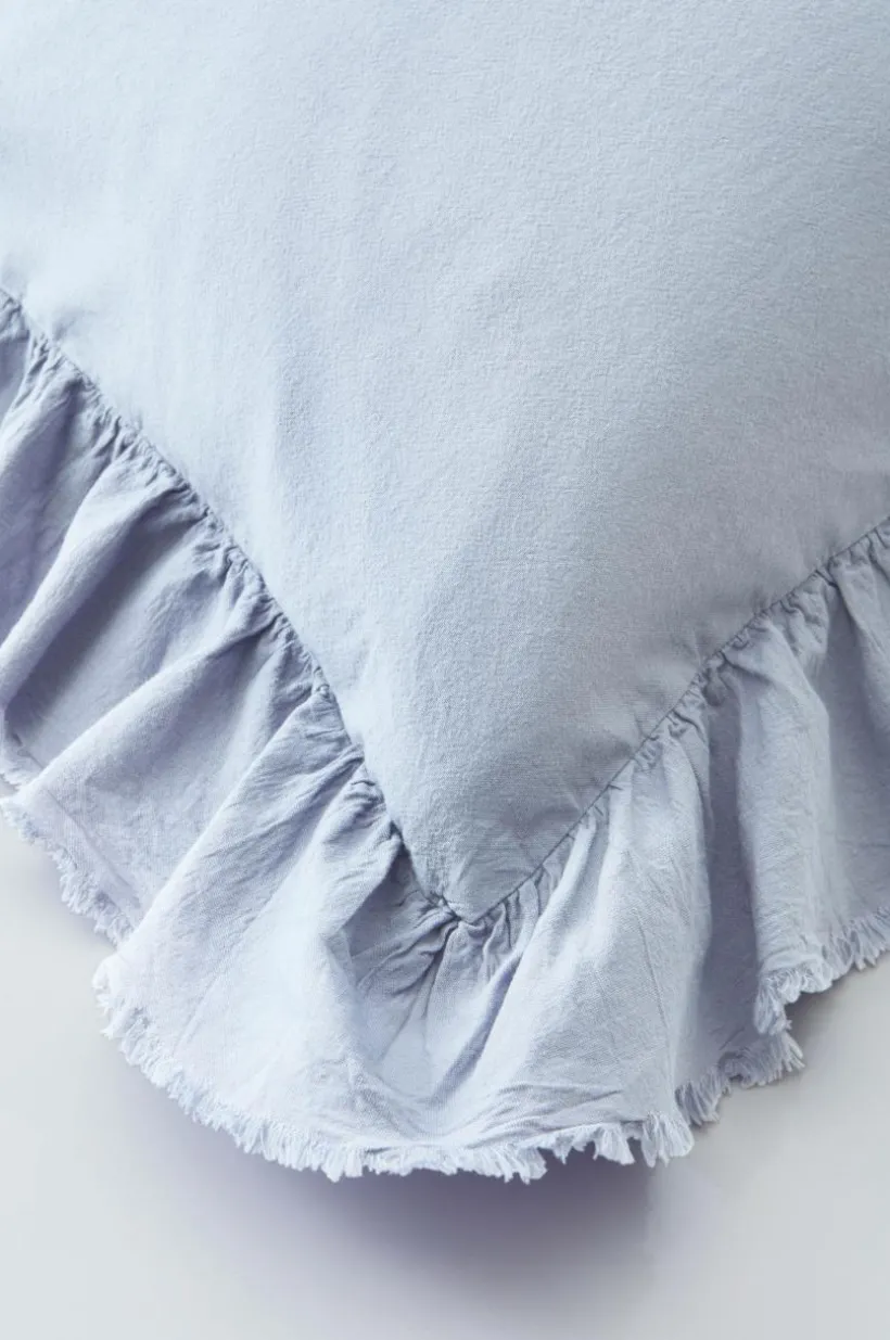 Örngott av tvättad bomull med mjuk känsla. Bomull är behagligt att bädda med och upplevs svalt och skönt mot huden. JINN har en lätt fransig volangkant runt om. Trådtäthet på 144 tc. (Trådtätheten talar om antalet trådar, thread counts, per kvadrattum i ett tyg. Ju högre trådtäthet desto högre kvalité.)