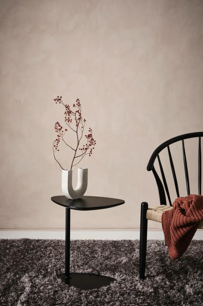 Sidobord av stål. Ett stilrent bord i snygg form som passar fint vid soffan och blir en vacker solitär.