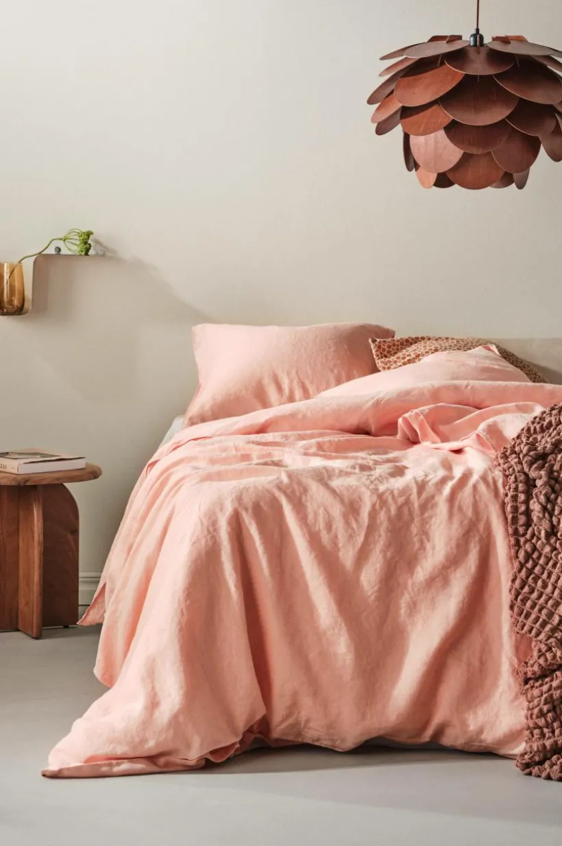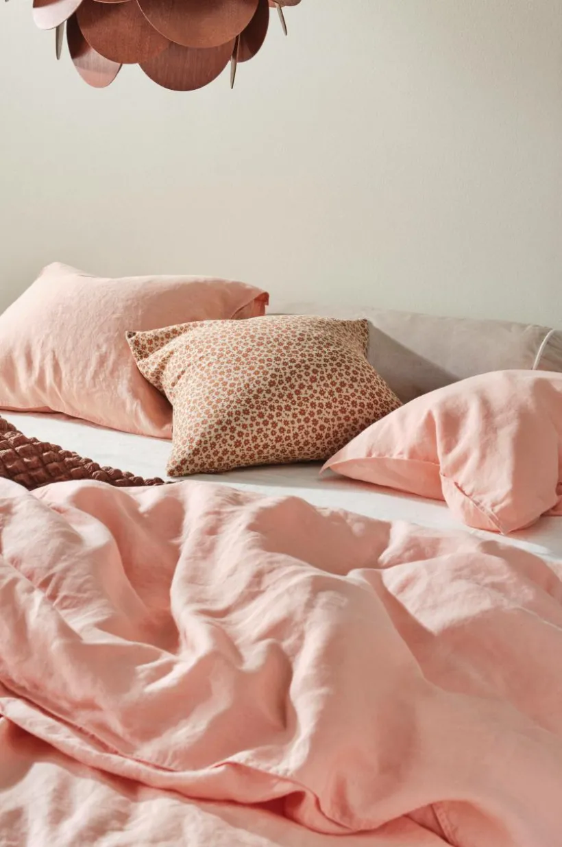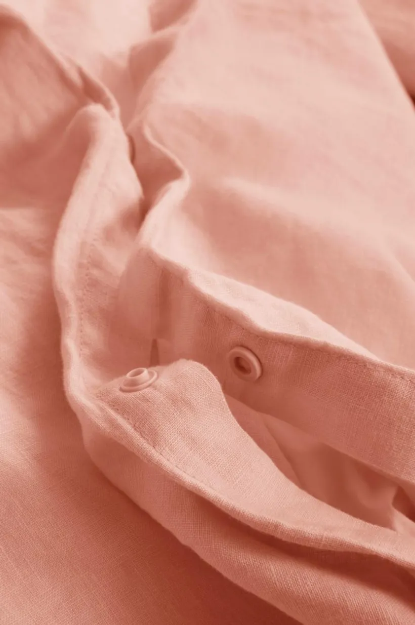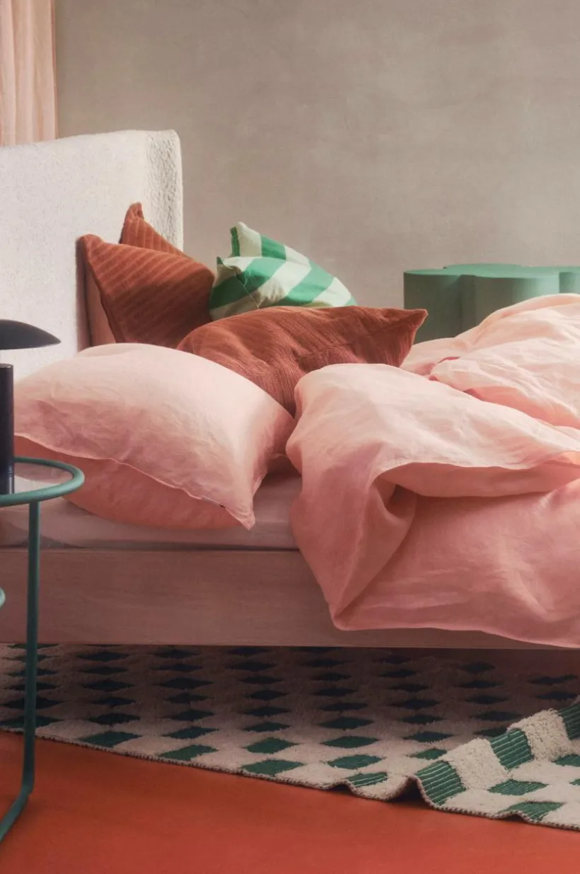 Påslakanset i tre delar med ett extra brett påslakan och två örngott av äkta lin, som är certifierat med European Flax. Sängkläderna är i en smidig, lite tunnare kvalité som är behaglig. Linet i JONIE är tvättat för att få en mjukare och mer följsam känsla. Linne värmer när det är kallt och är svalt att sova i när det är varmt. När linet tvättas får det ännu mjukare struktur som är behaglig mot huden. Öppning i övre hörnen på påslakanet, som underlättar att trä påslakanet över täcket. Knappar för tillslutning i påslakanet. Den fräscha färgskalan har inspirerats av naturen. Tygets vikt 160 g/m². Trådtäthet på 104 tc. (Trådtätheten talar om antalet trådar, thread counts, per kvadrattum i ett tyg. Ju högre trådtäthet desto högre kvalité. Med undantag för linne som ofta vävs glesare för att få den rätta känslan.)