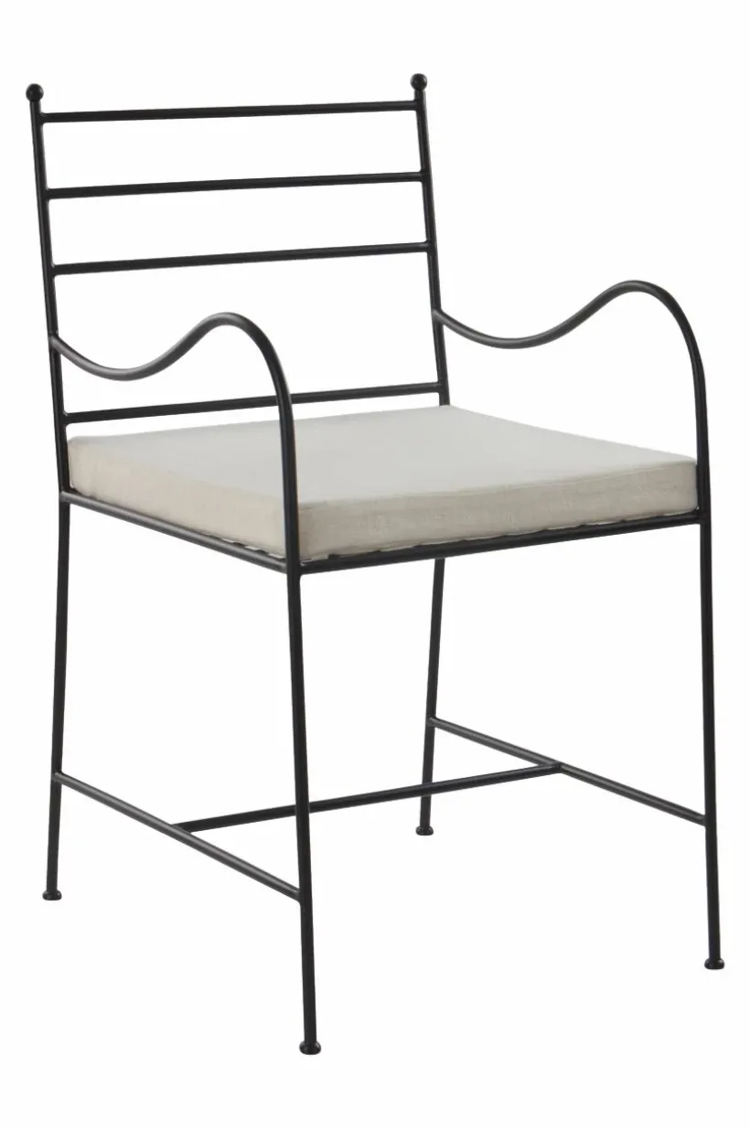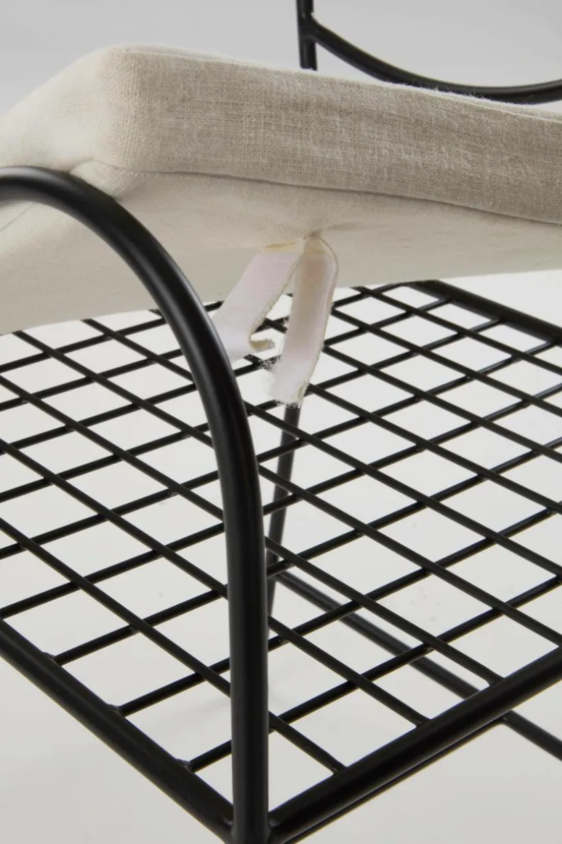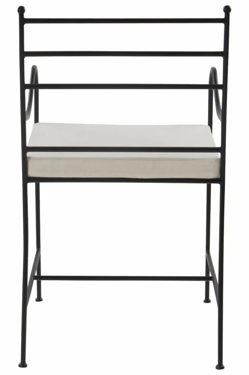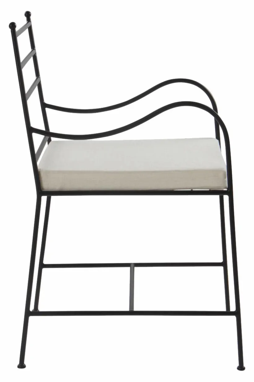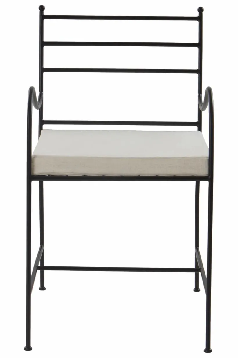 Charmig stol i romantisk stil. Tillverkad av järn med en mjuk sits som har avtagbart och tvättbart överdrag av linnetyg. Mjuk skumvaddering för maximal komfort. Stolen har en pulverlackerad yta som ger ett elegant utseende. Perfekt för användning i kök och vardagsrum.