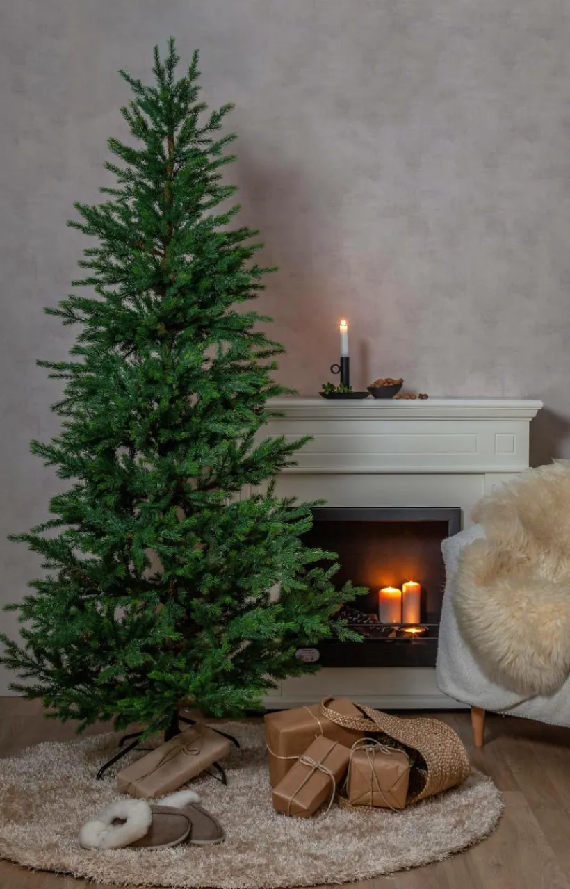 Härlig och verklighetstrogen gran i en fin grön färg. Granen är 200 cm hög och cirka 96 cm bred. För inom- och utomhusbruk.