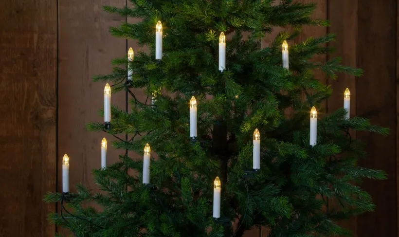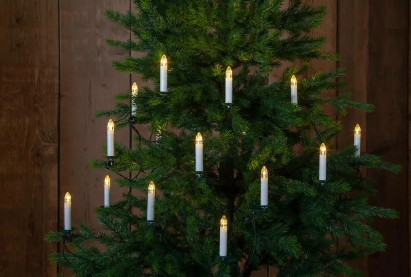 Dubbelledad julgransbelysning i lågvolt med 16 ljuskällor för både inom- och utomhusbruk. Ljusen ser verklighetstrogna ut och ger ett klart ljus, variera med eller utan bricka till ljusen. Dekorera granen med denna slinga för att skapa en mysig julkänsla. Slingans längd: 750 cm. Anslutningskabelns längd: 3 meter. Avstånd mellan lampor: 50 cm. Ljuskälla ingår. Lampans spänning 2,8-3,4 V. Volt 3 V DC.