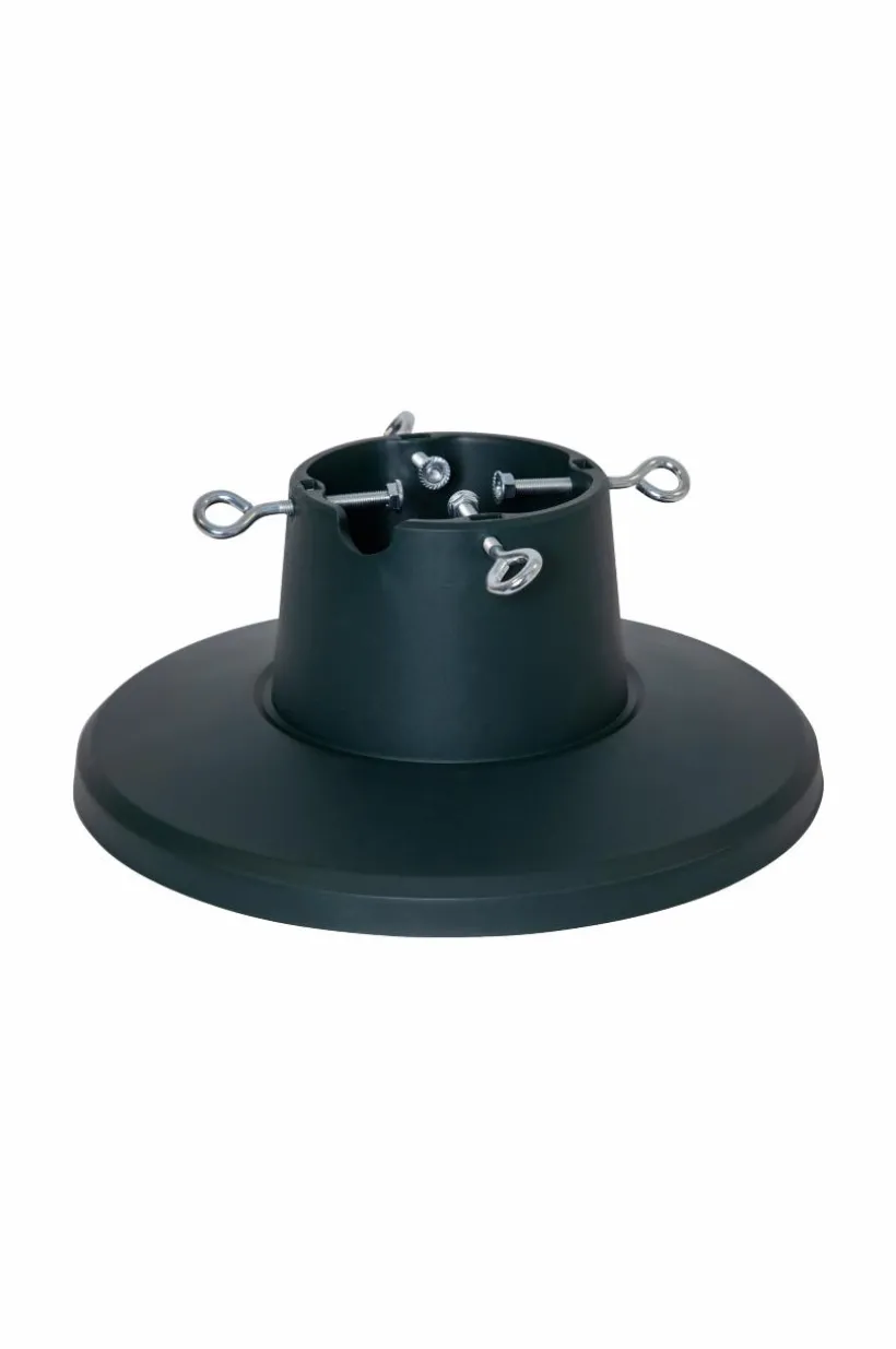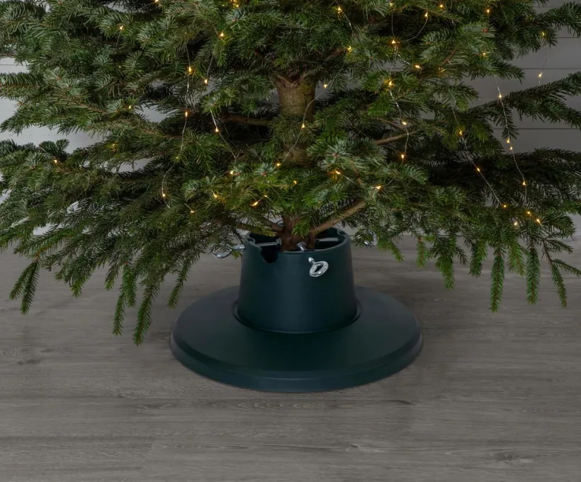 Granfot med plastbehållare och bas. För granar med en basdiameter mellan 3,5-10,5 cm och en höjd upp till 210 cm. Vattenbehållaren rymmer ca 1,6 L. Observera att skruvarna sitter fast i botten.