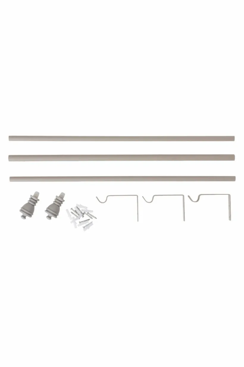 Stång i metall. Reglerbar 67-180 cm. Väggfästen och skruvar ingår. ø 1,6/1,9 cm. Väggavstånd 8,5 cm.