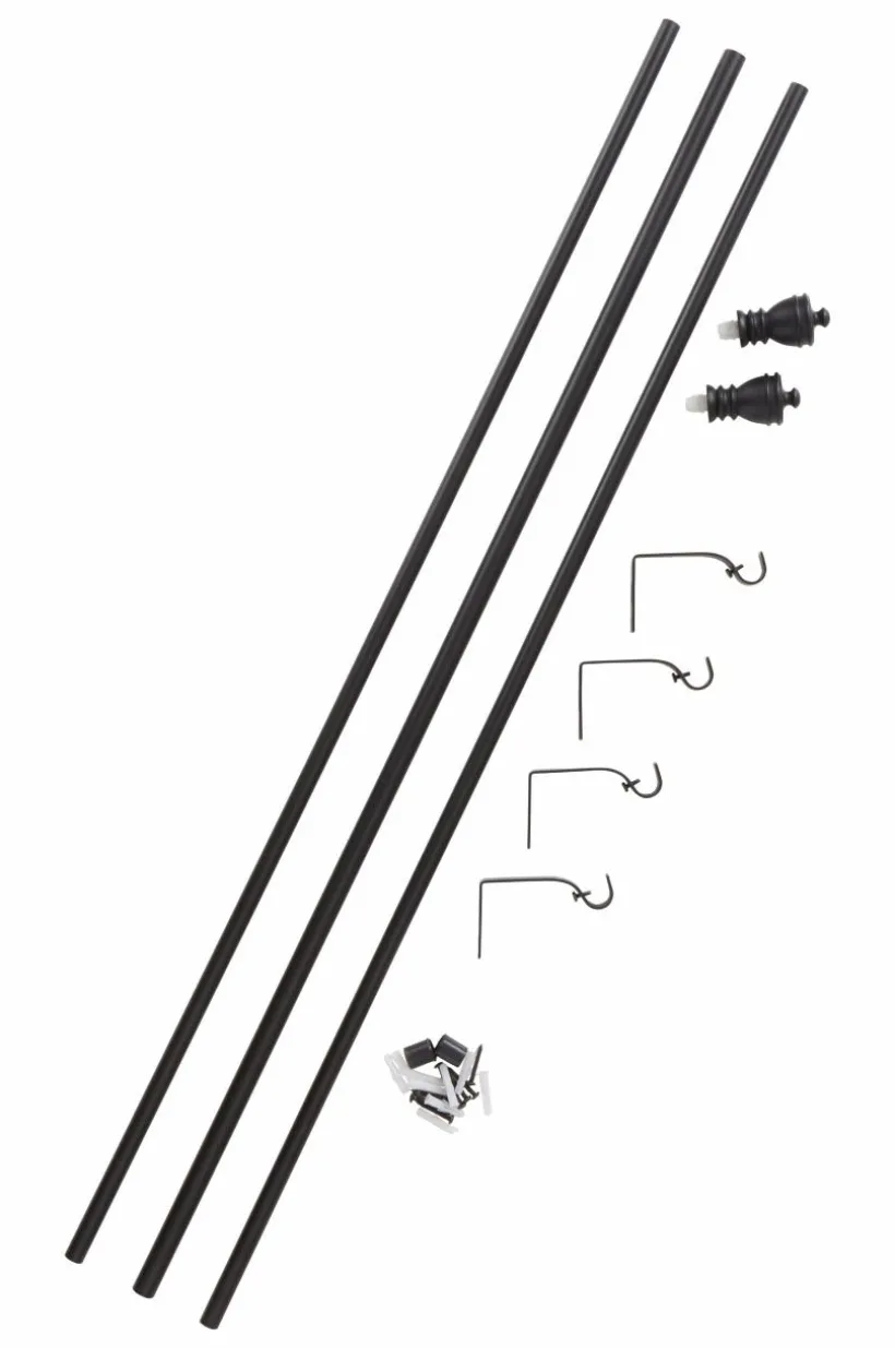 Storlek: Reglerbar 110-310 cm. 3 st 110 cm stänger, ø 1,6/1,9/1,6 cm. Änddekor längd 9 cm, ø 4 cm. Väggavstånd ca 8,5 cm.