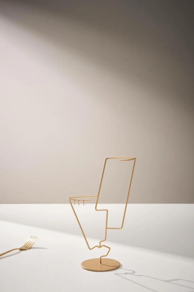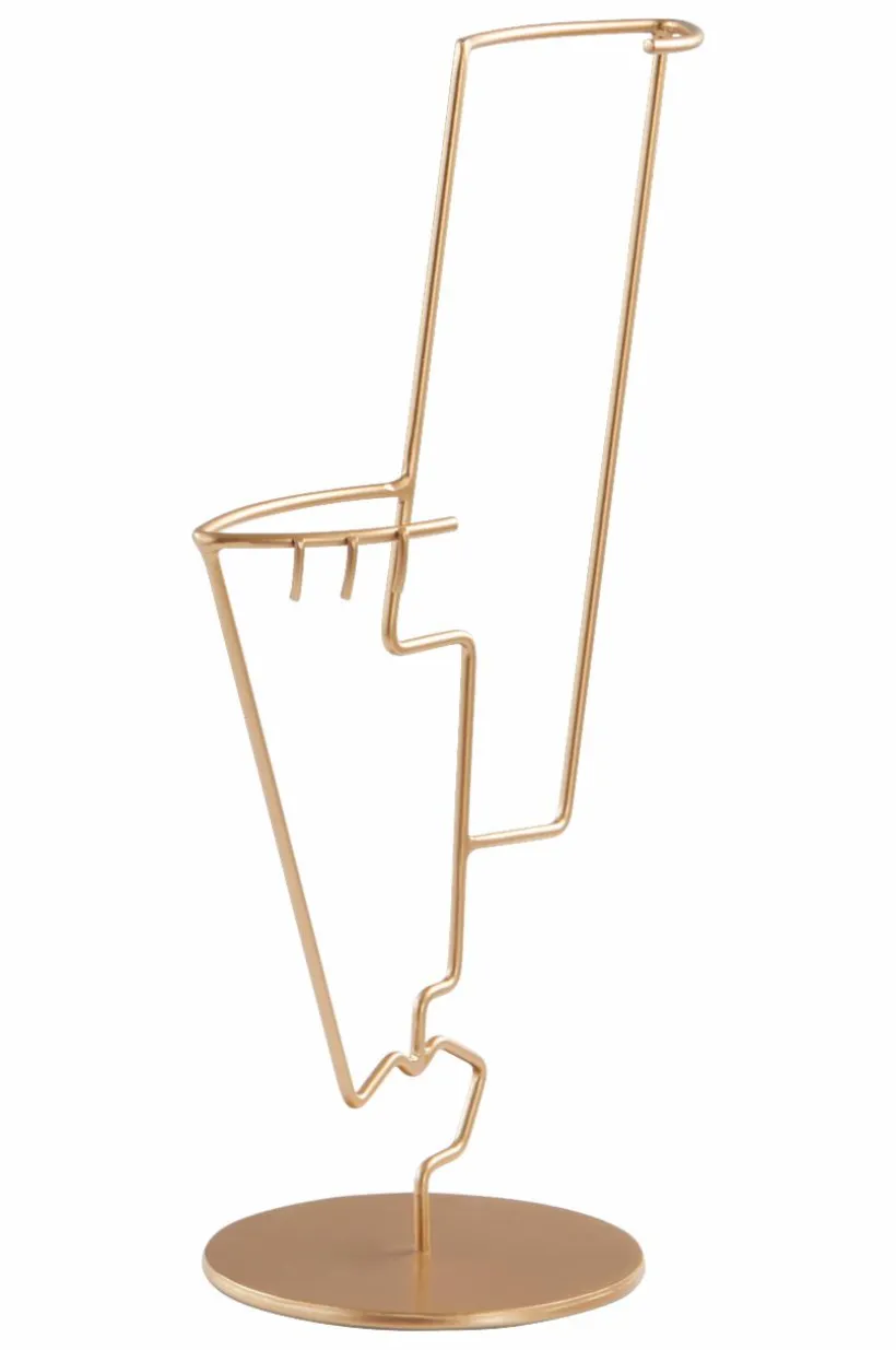 Dekoration i metalltråd som formats med kreativ känsla. JUMELLE är en stilfull, abstrakt skulptur som kan placerars stående på ett bord, i hyllan eller på fönsterbrädan. Kanske du associerar till ett människoansikte?