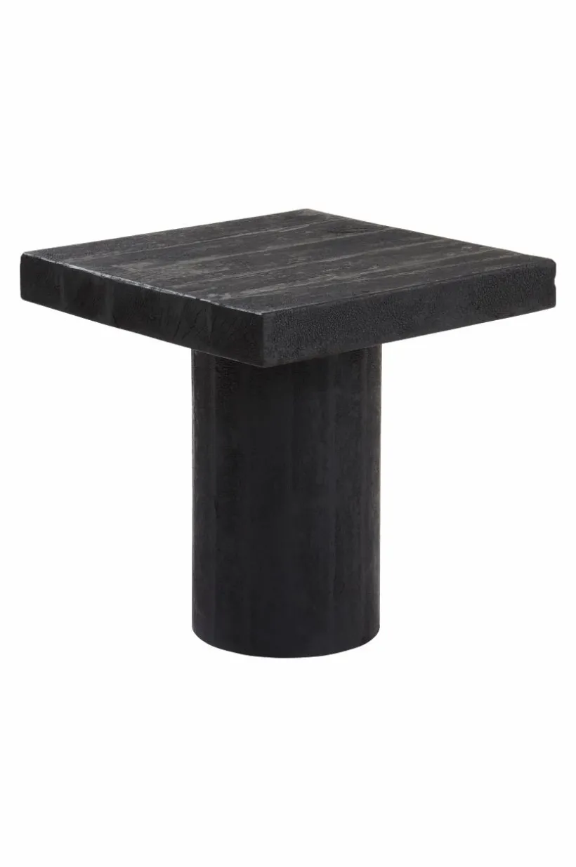 KATLA är ett litet, rustikt sidobord av massivt mangoträ med grov struktur. Ytbehandlingen är ruff och svartlackerad vilket ger träet en bränd känsla. Den kvadratiska bordsskivan är kraftig och pelarfoten är rund och rak. Det lilla bordet passar till exempel fint vid soffan och bredvid sängen.