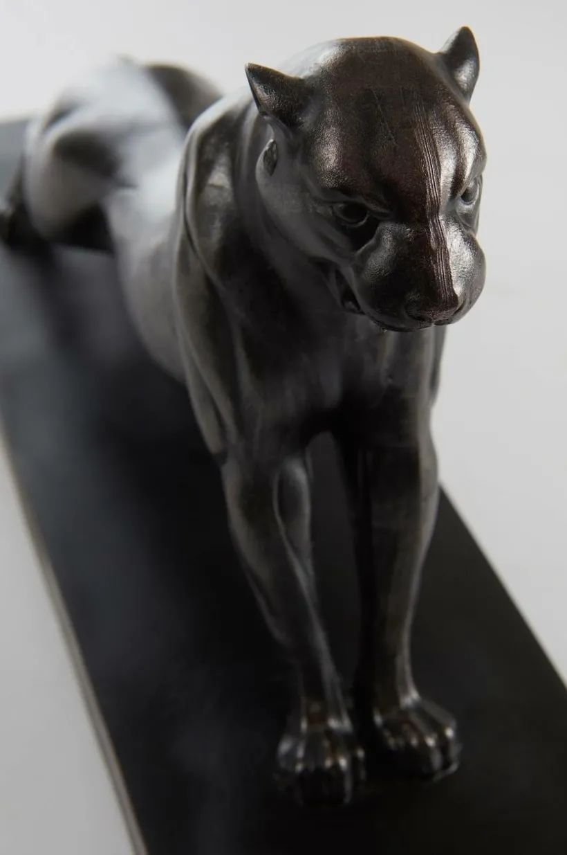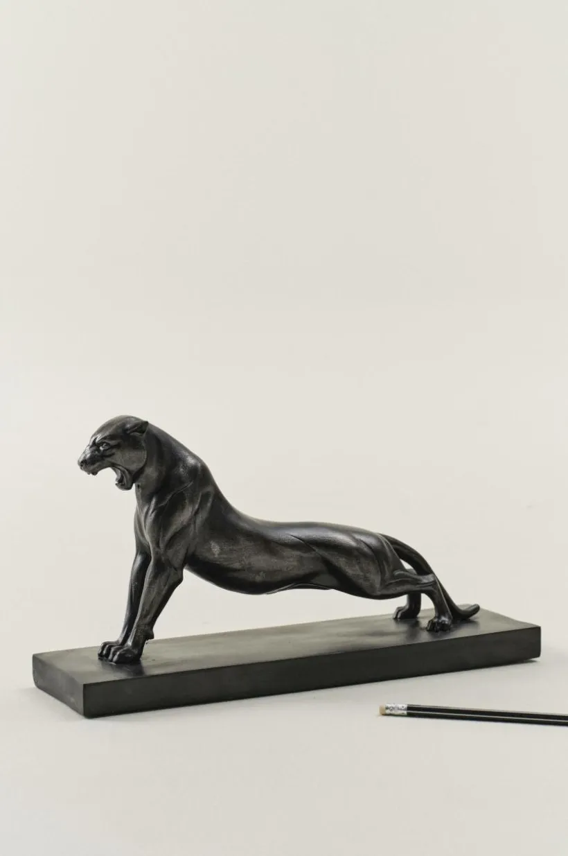 Handgjord panter-skulptur av polyresin, en ståtlig och mystisk katt som blickar ut över sitt revir. Perfekt som heminredningsdetalj för djurälskare och designentusiaster.
