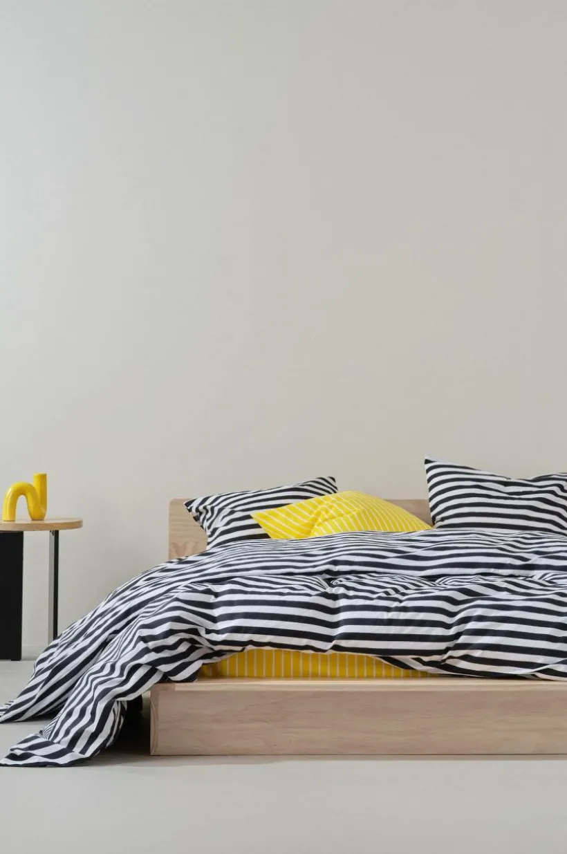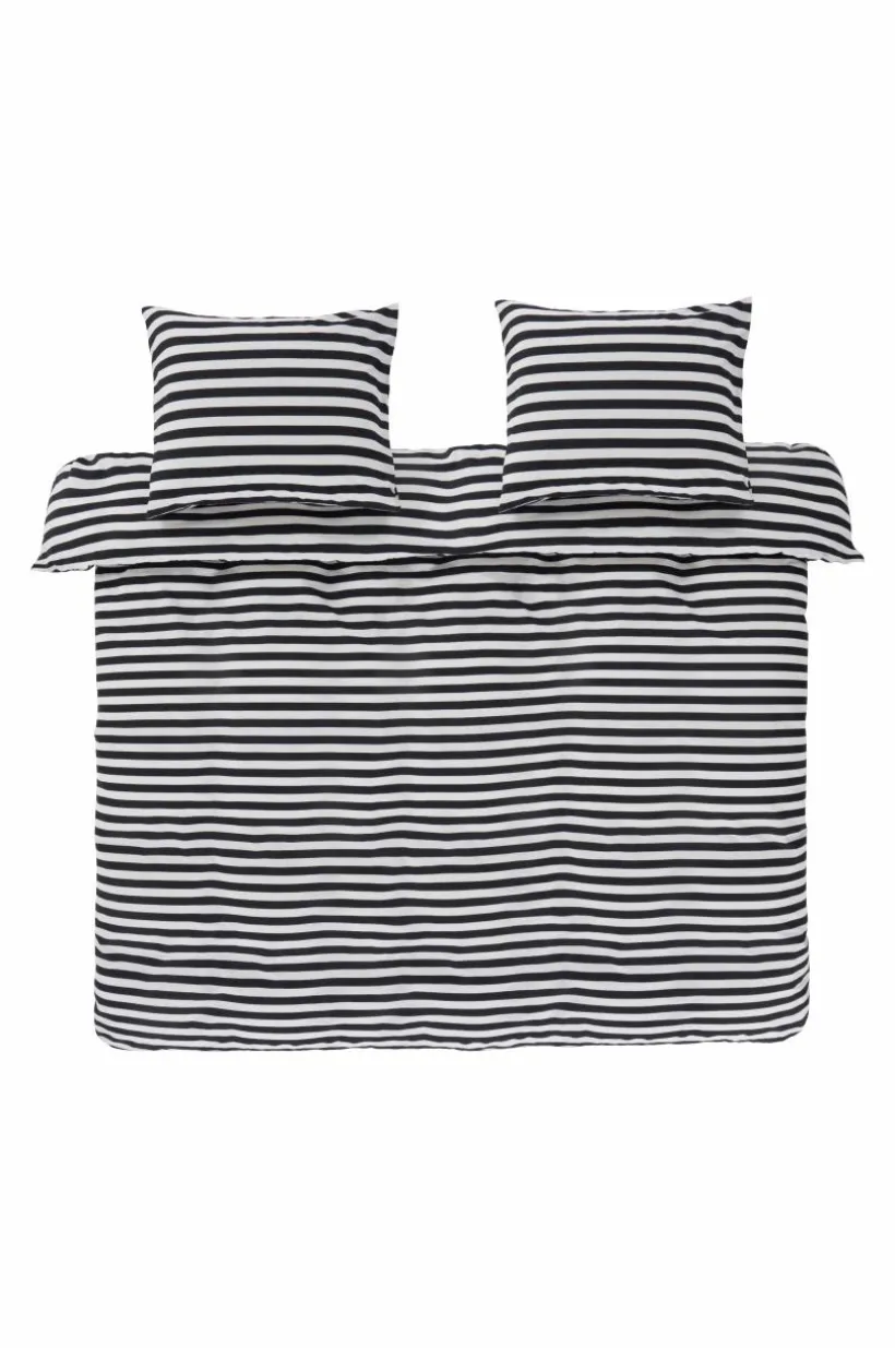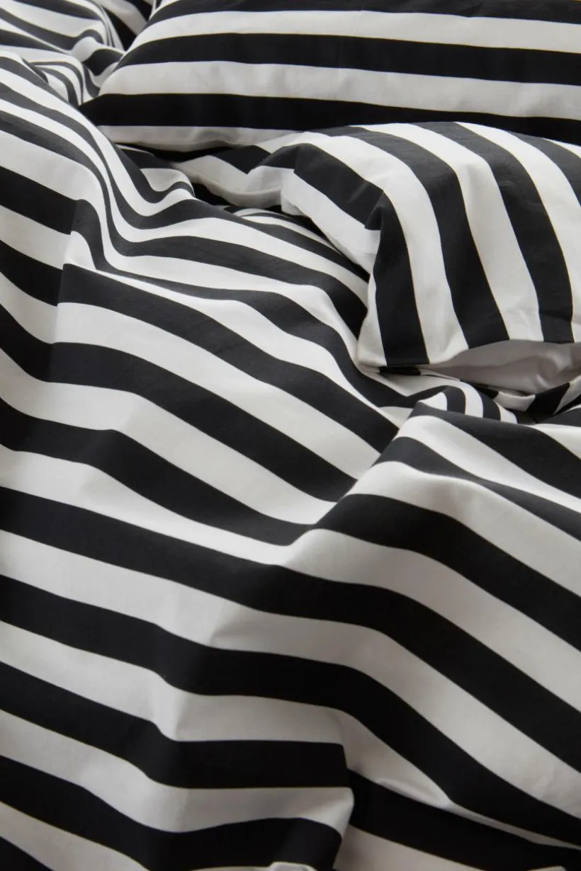 Randigt påslakanset i tre delar, ett extra brett påslakan och två örngott av bomull. Den tvärgående randningen är tryckt i fräscha, somriga färger och på båda sidor av örngott och påslakan. Bomull är en mjuk och behaglig kvalité som känns sval mot huden.