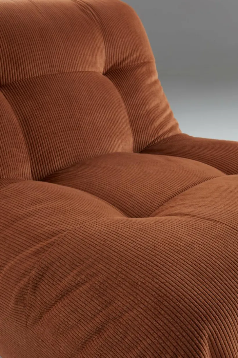 KELSO är en mysig fåtölj i avslappnad stil. Designen är utan armstöd och det bekväma sittdjupet i kombination med att du sitter ganska lågt ger en skön känsla. Manchesterklädseln med djupa punktstickningar signalerar retro.