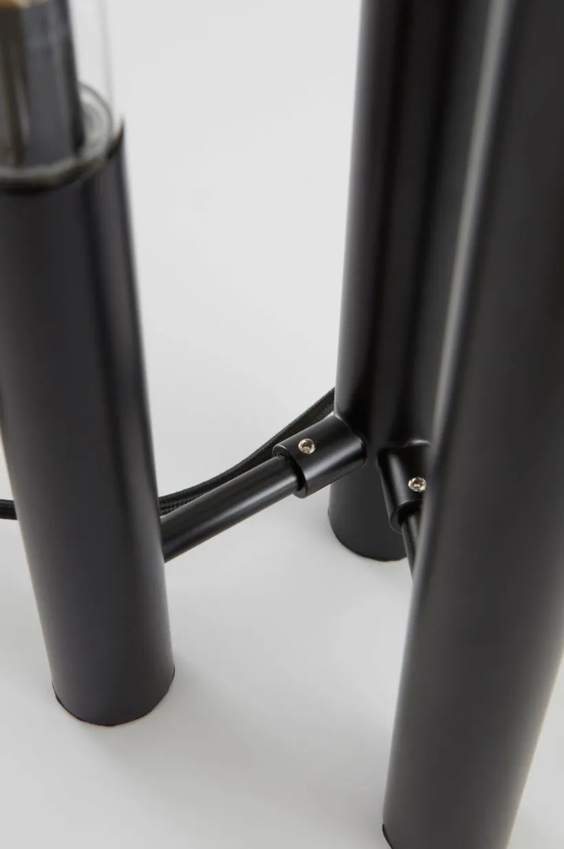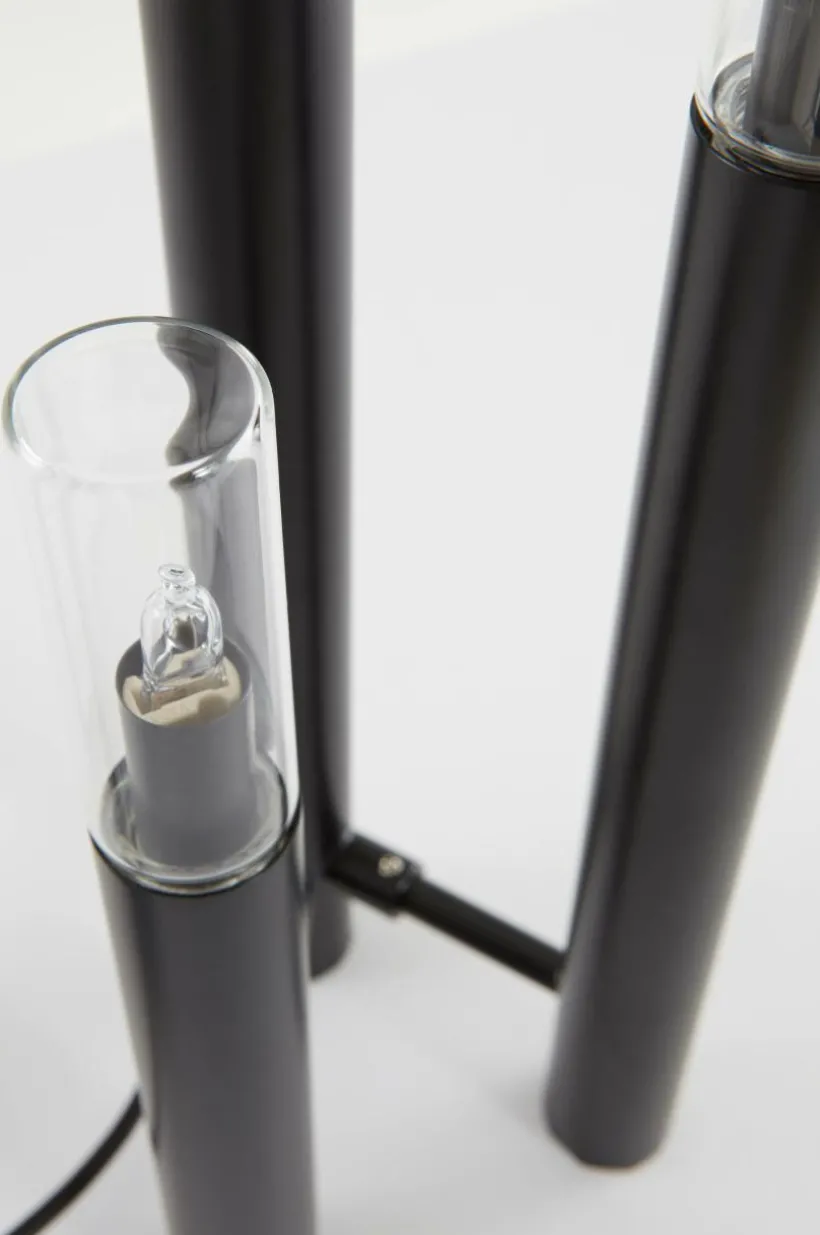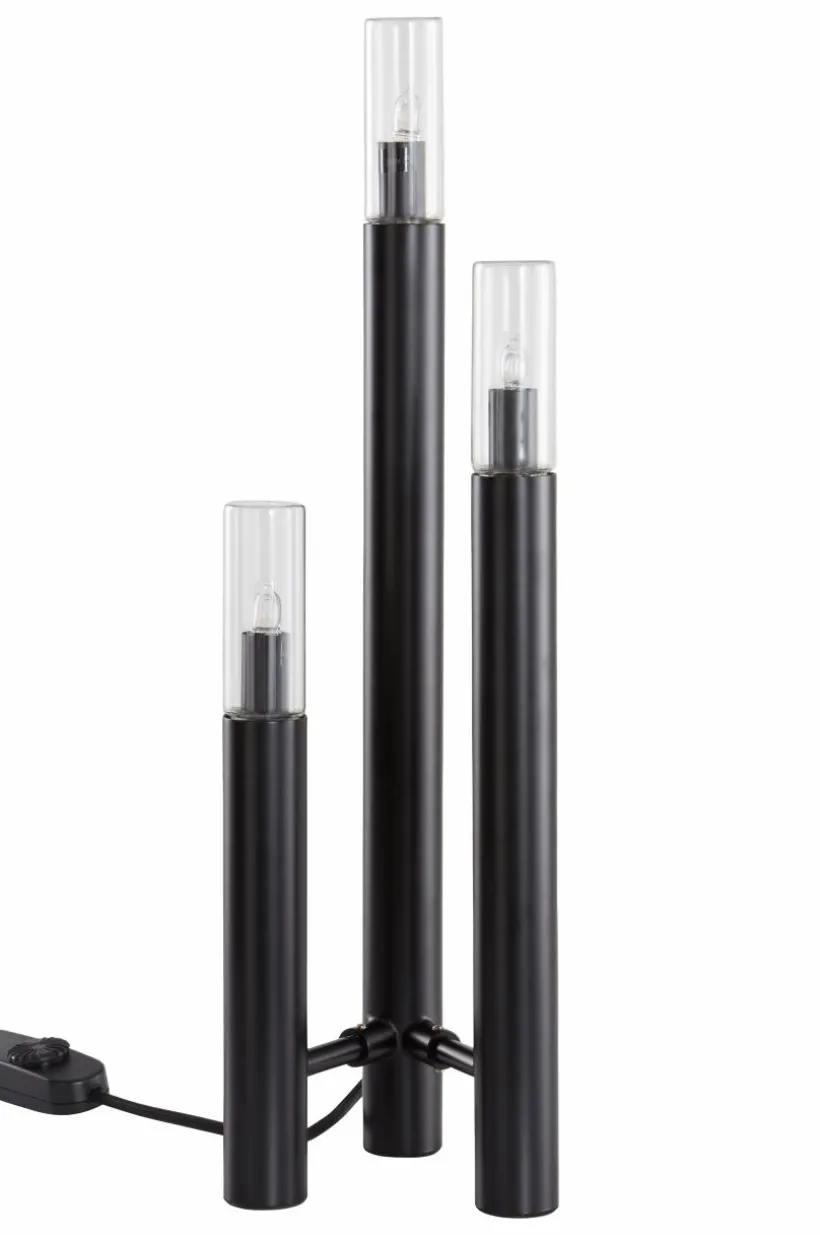 Bordslampa av järn där klarglas kombinerats med mattlackerad finish. Lampan är stilren och har tre ljuskällor som lyser fint. Strömbrytare med dimmerfunktion.