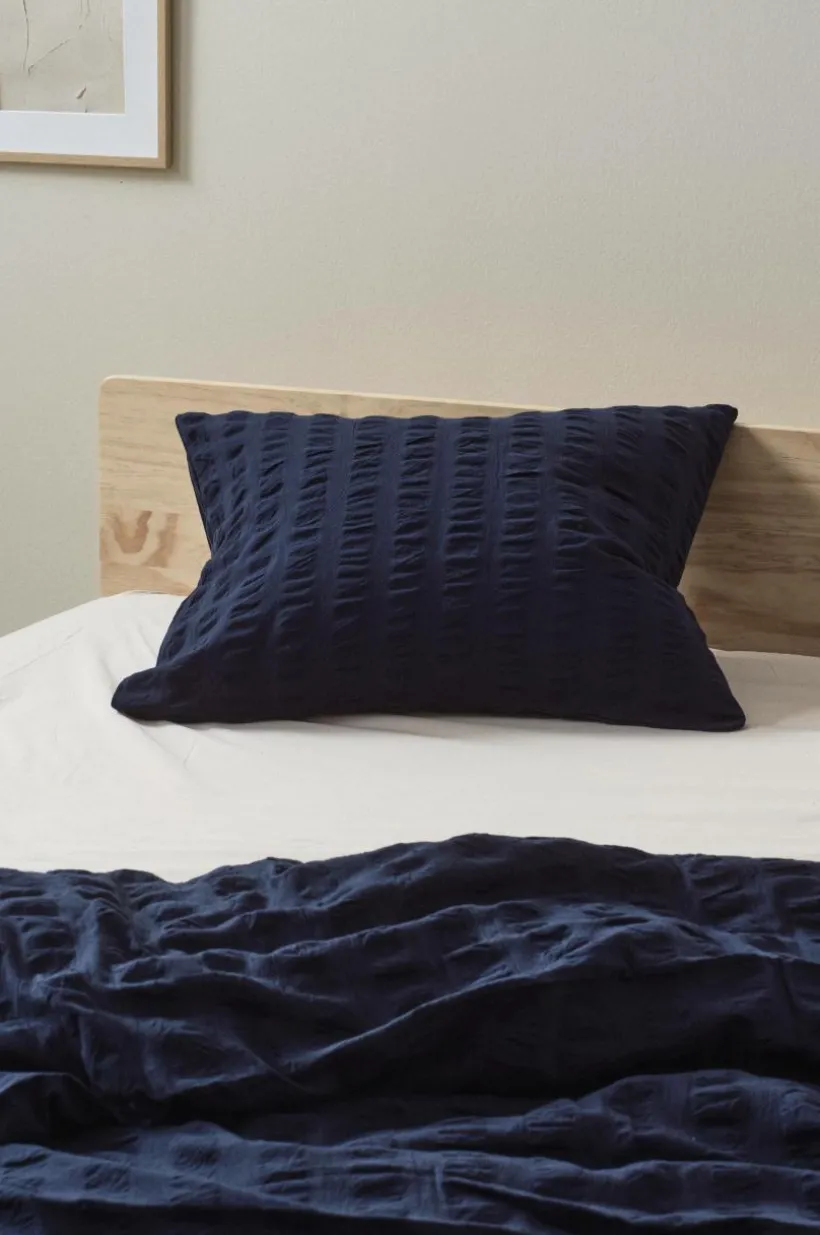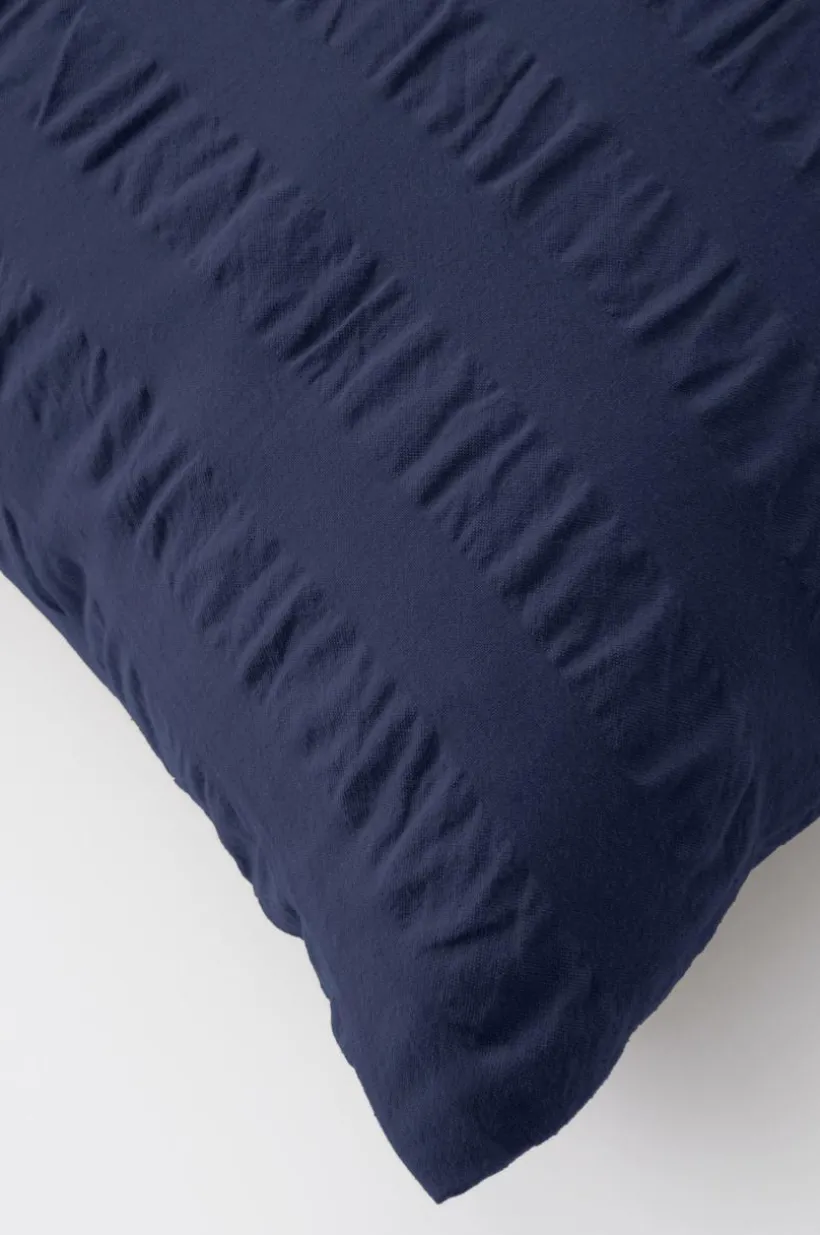 Örngott i skön bäckebölja av certifierad, ekologisk bomull. Bäckebölja är en luftig kvalité och det bubbliga tyget känns svalt och andas behagligt. Serien KIMMI är enfärgad och samtidigt randig. Varannan rand är slätt, vävt tyg och varannan rand är i bäckebölja. Tyget är garnfärgat och tvättat för att få en mjukare känsla. Trådtäthet på 120 tc. (Trådtätheten talar om antalet trådar, thread counts, per kvadrattum i ett tyg. Ju högre trådtäthet desto högre kvalité.)
