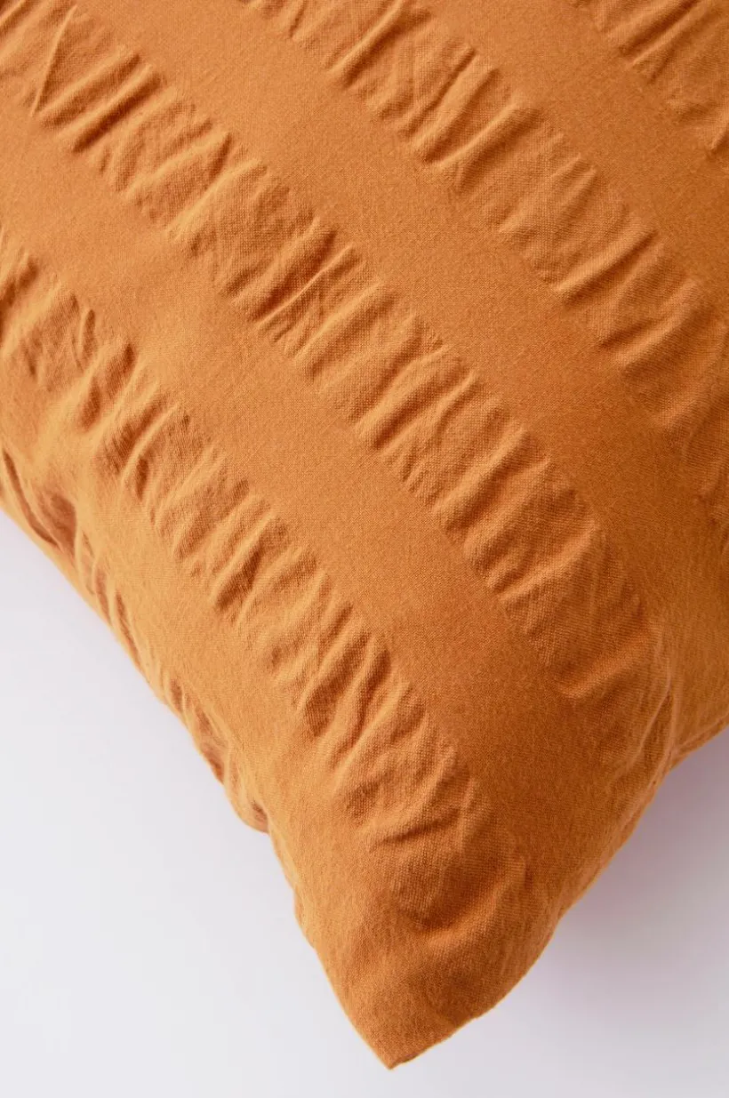 Örngott i skön bäckebölja av certifierad, ekologisk bomull. Bäckebölja är en luftig kvalité och det bubbliga tyget känns svalt och andas behagligt. Serien KIMMI är enfärgad och samtidigt randig. Varannan rand är slätt, vävt tyg och varannan rand är i bäckebölja. Tyget är garnfärgat och tvättat för att få en mjukare känsla. Trådtäthet på 120 tc. (Trådtätheten talar om antalet trådar, thread counts, per kvadrattum i ett tyg. Ju högre trådtäthet desto högre kvalité.)