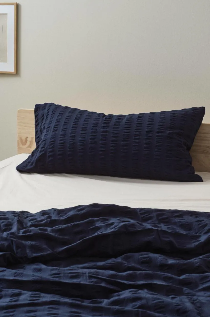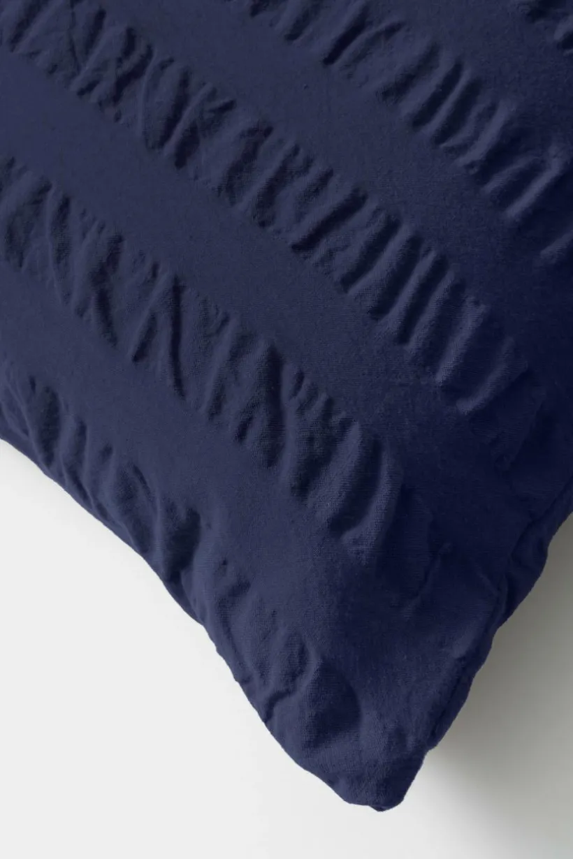 Örngott i skön bäckebölja av certifierad, ekologisk bomull. Bäckebölja är en luftig kvalité och det bubbliga tyget känns svalt och andas behagligt. Serien KIMMI är enfärgad och samtidigt randig. Varannan rand är slätt, vävt tyg och varannan rand är i bäckebölja. Tyget är garnfärgat och tvättat för att få en mjukare känsla. Trådtäthet på 120 tc. (Trådtätheten talar om antalet trådar, thread counts, per kvadrattum i ett tyg. Ju högre trådtäthet desto högre kvalité.)