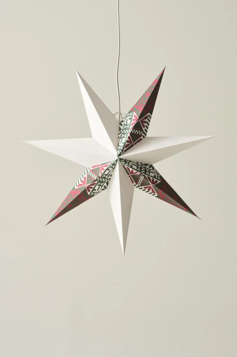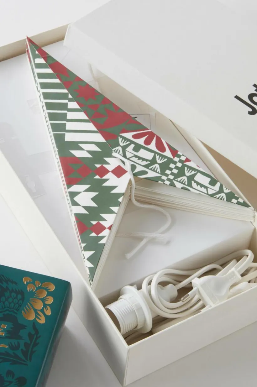KINTAS är en julstjärna i unik design av Mikael Selin. Stjärnan som är av papper är klassisk och traditionell i formen samtidigt som färg och mönster med asymmetri skapar uppmärksamhet. En härlig julstämning infinner sig när du hängt upp KINTAS i ditt adventsfönster. Lamphållare med vit plastsladd ingår. Viss montering krävs. Monteringsanvisning medföljer.