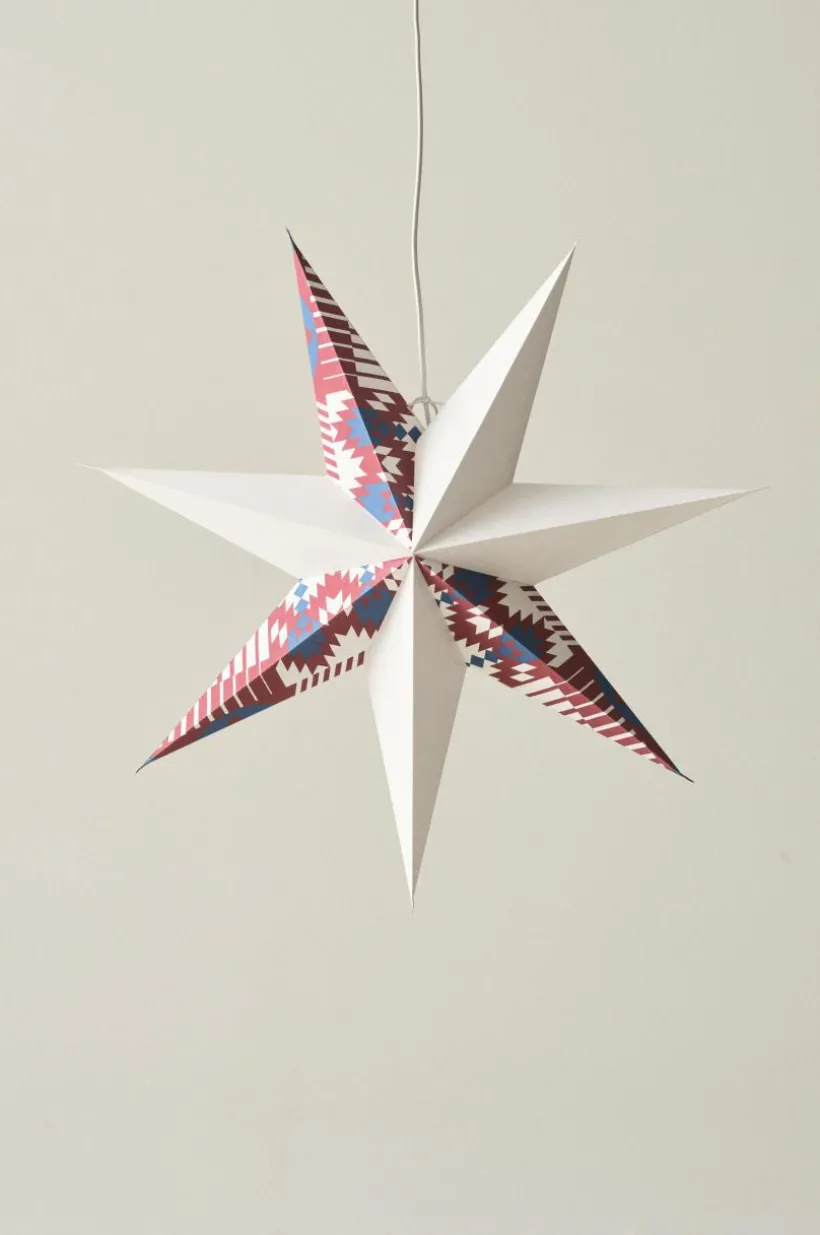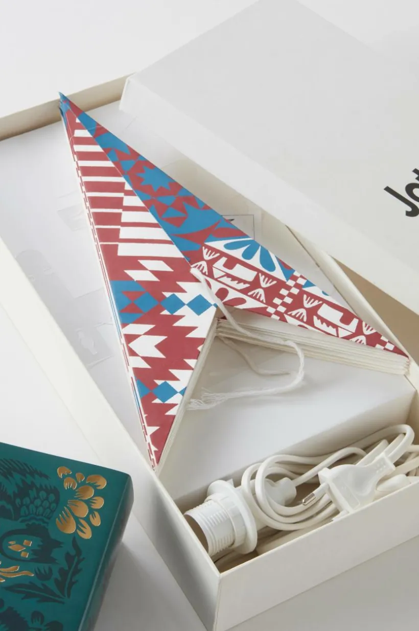 KINTAS är en julstjärna i unik design av Mikael Selin. Stjärnan som är av papper är klassisk och traditionell i formen samtidigt som färg och mönster med asymmetri skapar uppmärksamhet. En härlig julstämning infinner sig när du hängt upp KINTAS i ditt adventsfönster. Lamphållare med vit plastsladd ingår. Viss montering krävs. Monteringsanvisning medföljer.