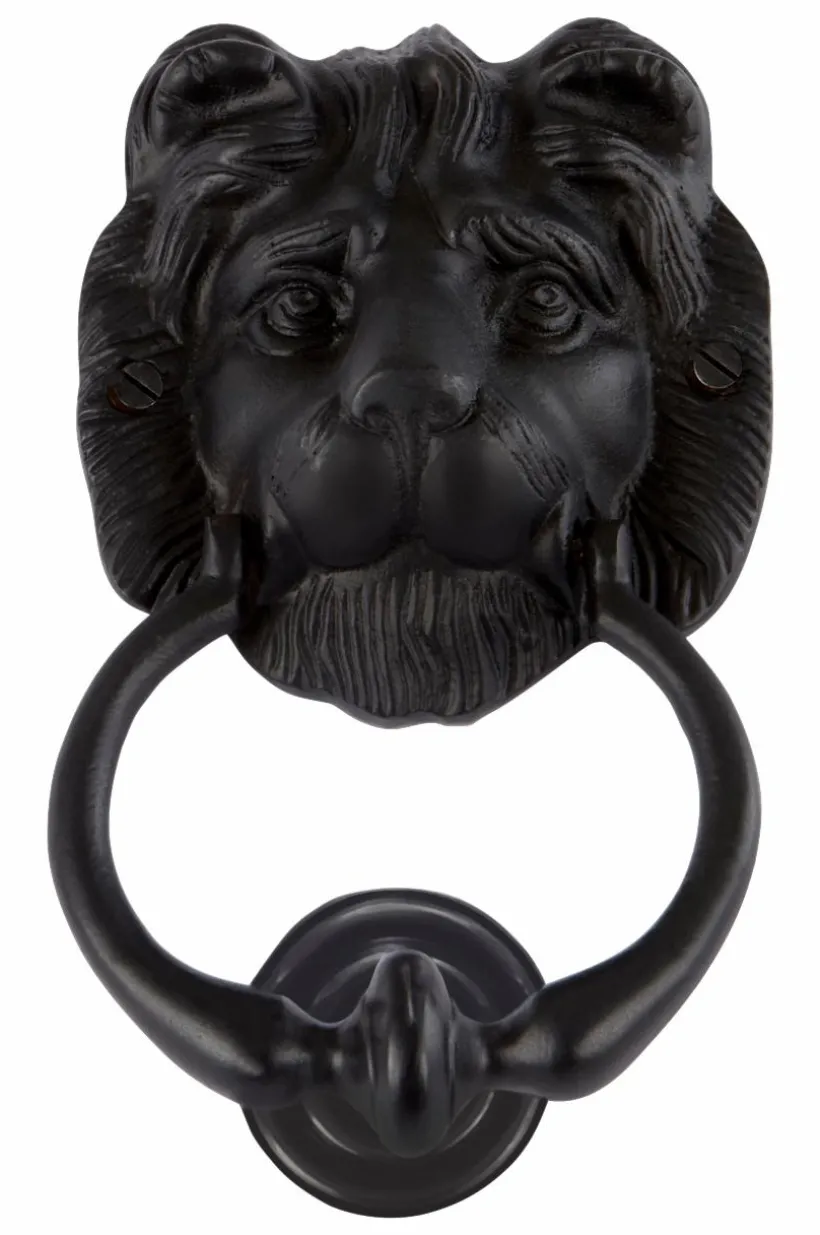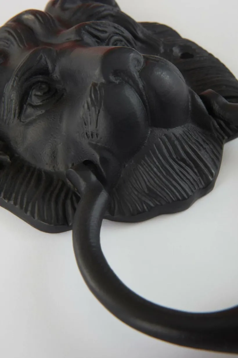 Dörrkläpp i mässing formad som ett lejonhuvud. En snygg dörrkläpp som sticker ut och blir en spännande detalj till din ytterdörr.